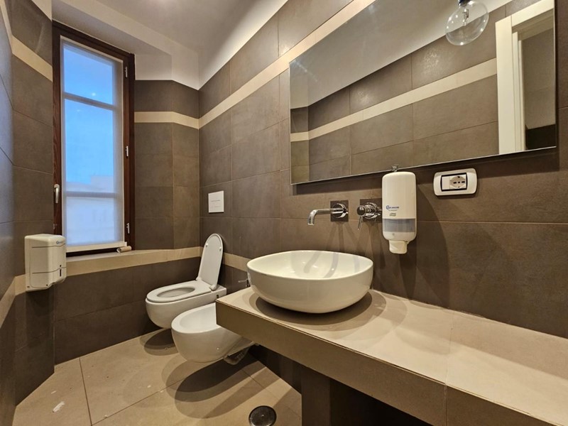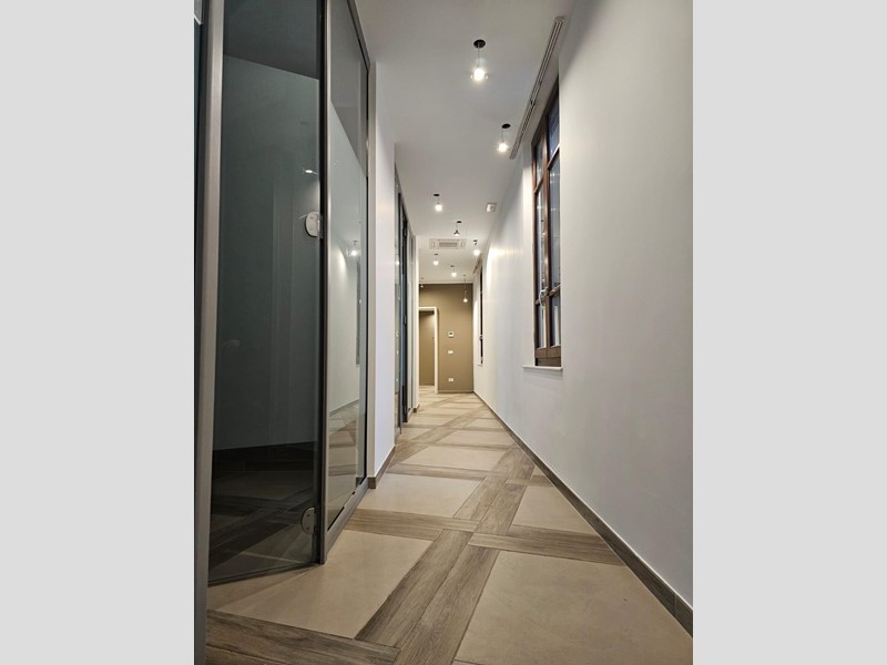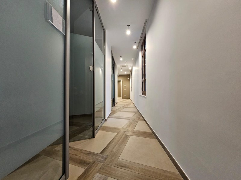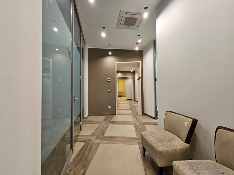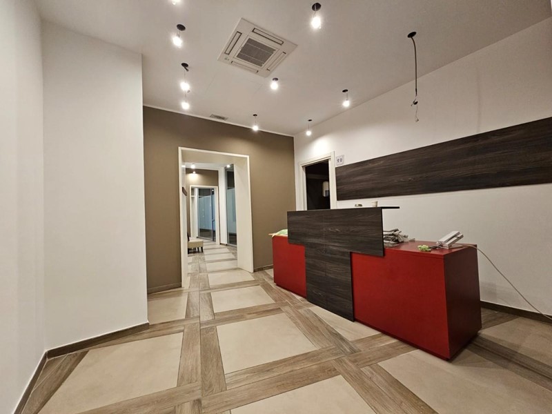 Recentemente ristrutturato con gusto con materiali di alto livello, l'immobile vanta una superficie commerciale di circa 270 mq dislocati su unico livello oltre ad un bellissimo e grande terrazzo interno dove poter riposare durante le lunghe giornate lavorative. Grazie alla sua disposizione planimetrica interna, la proprietà si presta per essere adibita a numerose attività che vanno da uno studio dentistico ad uno studio di associati, fino ad arrivare ad un centro chirurgo/estetico di alto livello. Attualmente l'immobile si compone da ingresso con cappottiera, doppio ufficio con affacci su p.zza Matteotti, reception, wc di servizio, doppi servizi igienici completi, zona macchinari ed ulteriori cinque ampie stanze adibite ad uso ufficio.