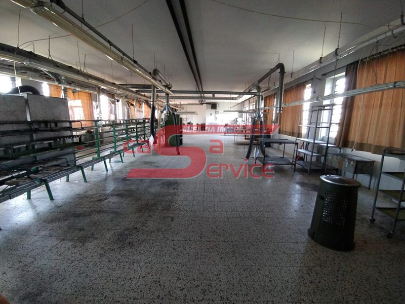 L'immobile si sviluppa su due piani fuori terra ed al piano terra troviamo un ampio vano ad uso magazzino oltre spogliatoi e servizi ed un montacarichi che serve a portare materiali per il piano superiore dove si trovava la produzione; al paino primo accessibile tramite scale esterne troviamo un ampio vano oltre ad ufficio e bagni.