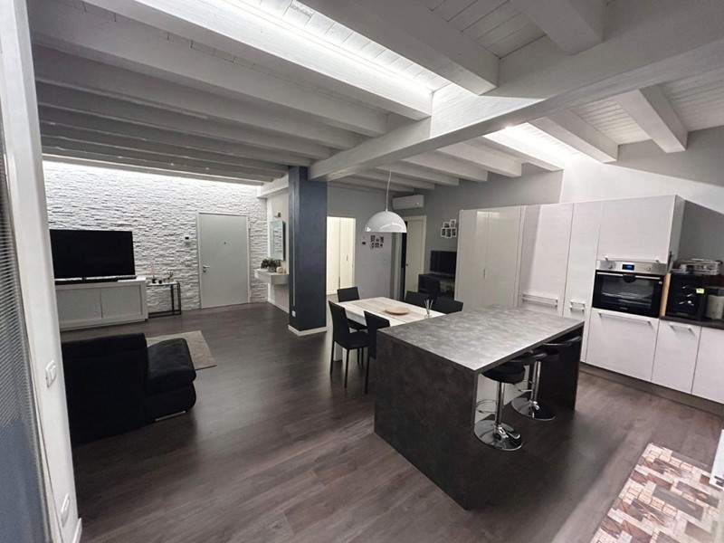 L'appartamento è composto da ingresso su ampia zona giorno travato da splendidi travi sbiancate, ampio bagno di servizio ad uso lavanderia, comodo e funzionale.