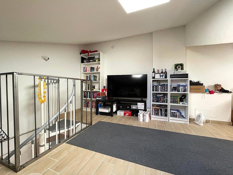 Nel Comune di Santa Maria a Monte nella frazione di Ponticelli è in vendita questo grazioso bilocale on ottime condizioni. Si accede da scala esterna a comune con alre 3 unità ed è posizionato al 2° piano ed ultimo del fabbricato. Ingresso in soggiorno con angolo cottura a vista, disimpegno notte, bagno con doccia e camera matrimoniale grande con terrazzo. Dalla zona giorno parte una scala a chiocciola che ci accompagna in uno spazioso sottotetto da utilizzare come stanza pluriuso con lucernario e riscaldamento. A piano terra Garage e posto auto.