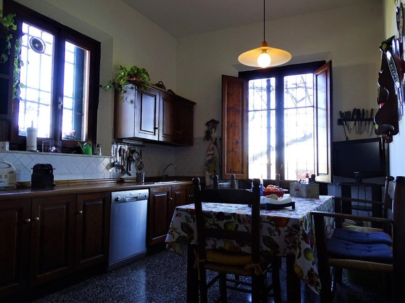 Al primo piano (145 mq.): soggiorno, sala da pranzo, cucina abitabile, dispensa, studio, camera da letto, disimpegno e bagno con doccia.