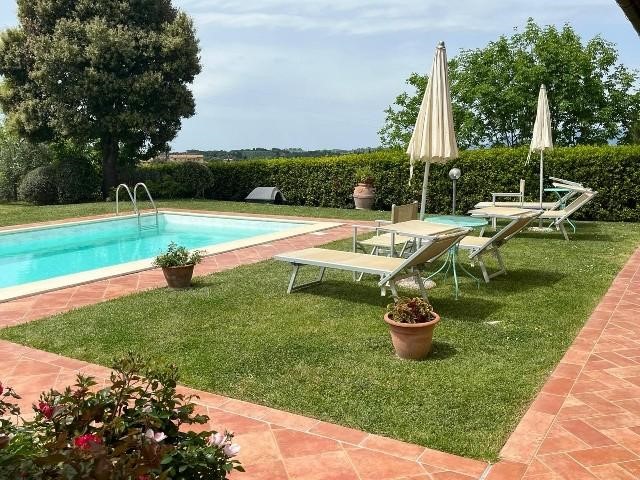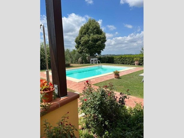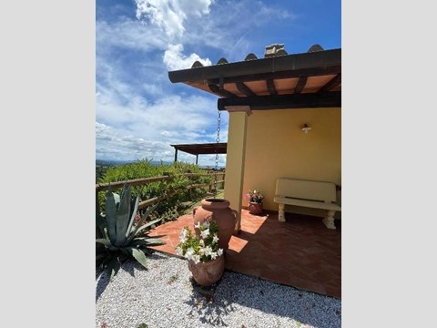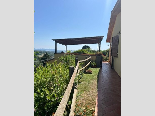 Casa singola di mq 100 circa posta in posizione panoramica con vista a 360°, in prossimità del borgo di Partino. L' immobile completamente indipendente, con il terreno di pertinenza dell’ immobile che è interamente recintato, si sviluppa tutto al piano terra ed è composto da ampio soggiorno - angolo cottura con caminetto, disimpegno notte, due camere e bagno; dalla zona giorno si accede esternamente ad un ampia terrazza panoramica che propone una vista mozzafiato sulle colline della Valdera, e ad una comoda piscina con area relax. Al piano seminterrato troviamo un locale deposito con bagno per una superficie di circa 30 mq, utilizzato come rimessaggio agricolo e dei macchinari per la gestione del resede e del terreno agricolo che si espande per una superficie di circa 40.000 mq. Il terreno agricolo, è in parte boschivo ed in parte coltivato ad oliveto, ed ha una giacitura terrazzata e/o scoscesa.