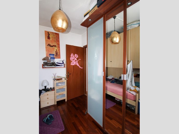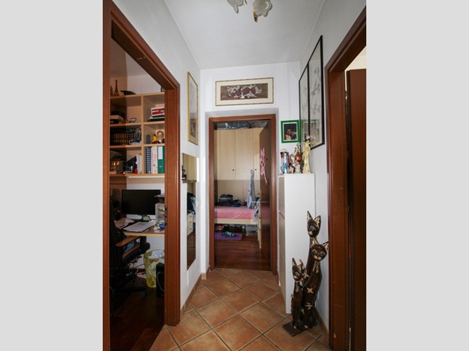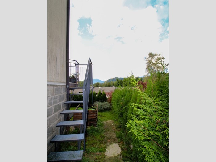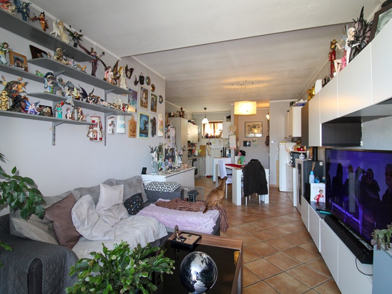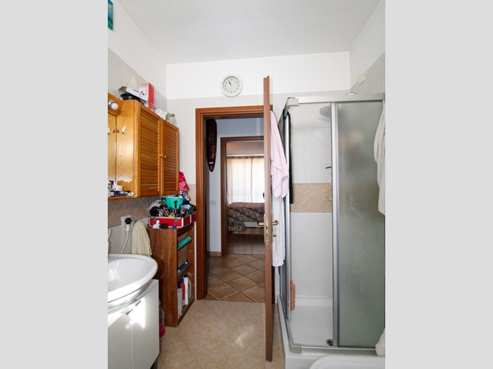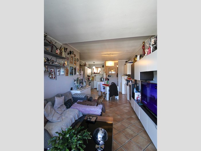 L'appartamento è così composto: soggiorno con cucina a vista, disimpegno, bagno finestrato con doccia e due camere da letto. Ampio balcone panoramico tramite il quale si accede al giardino di proprietà.