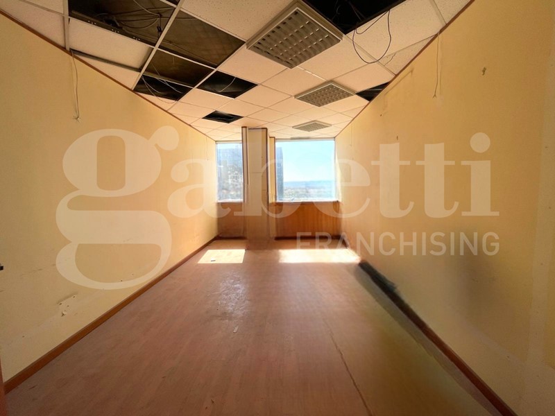Ampia unità immobiliare di 186 mq, sita al piano ottavo, composta da: ingresso in disimpegno, corridoio, cinque ambienti adatti a più postazioni di lavoro, due ripostigli utilizzabili come archivi e quattro bagni di cui uno con antibagno. Ogni ambiente è dotato di molteplici punti luce che lo rendono molto luminoso grazie al piano alto e alla sua esposizione panoramica. La distribuzione interna degli spazi è ottimale in quanto offre la flessibilità necessaria per adattarsi alle esigenze specifiche di qualsiasi attività professionale.