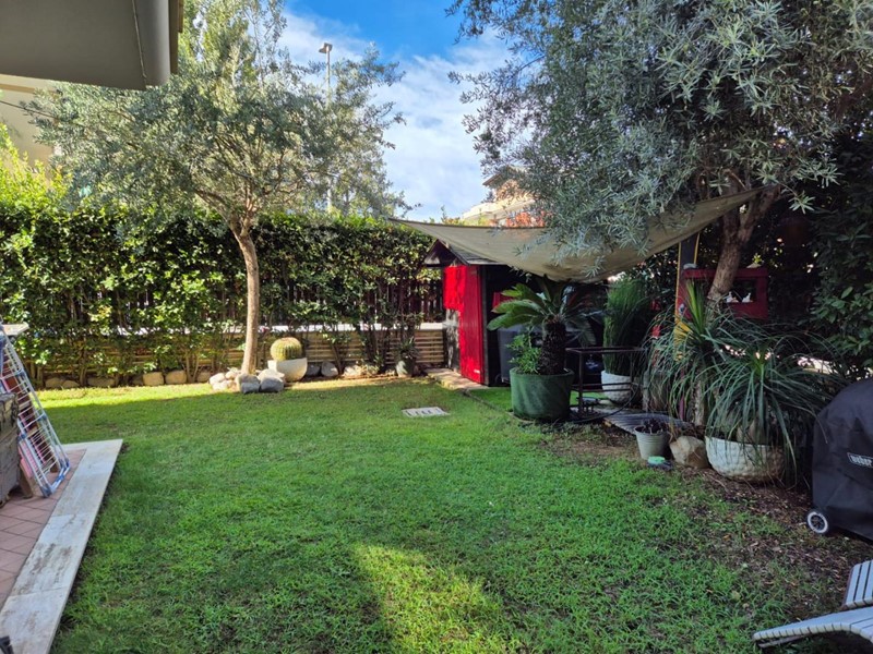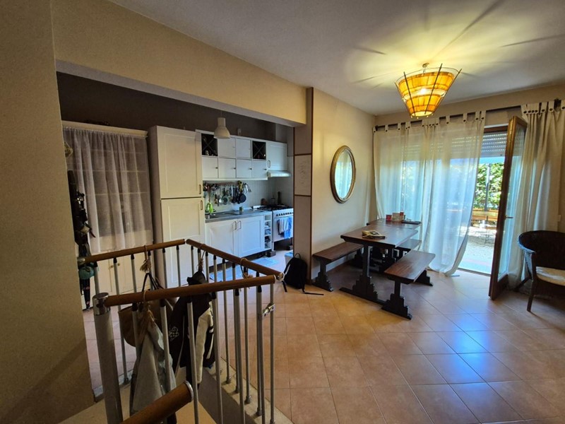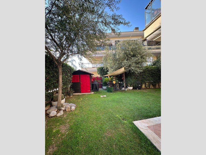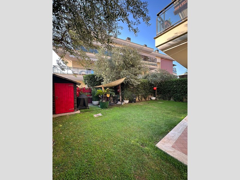 L'immobile si apre con un piccolo disimpegno dal quale si accede ad un salone doppio illuminato da una grande porta finestra che conduce al giardino. Quest'ultimo di 150 mq circa dona all'immobile uno splendido spazio all'aperto versatile e confortevole arricchito da una comoda casetta in legno.