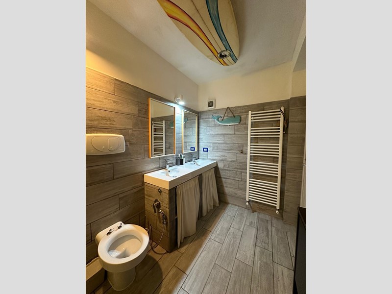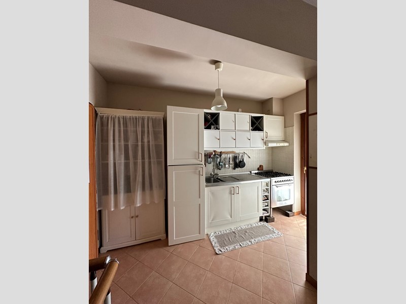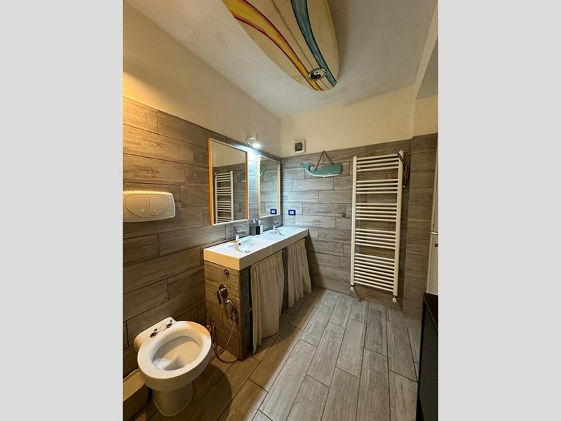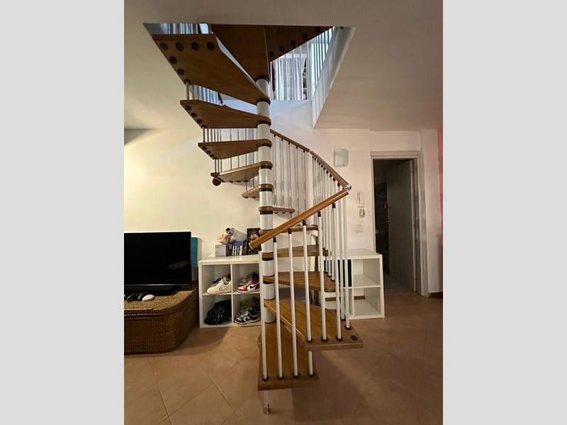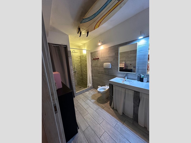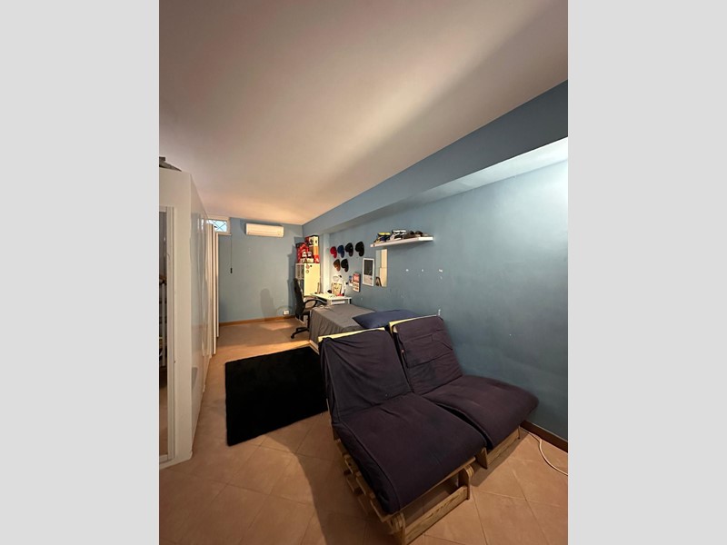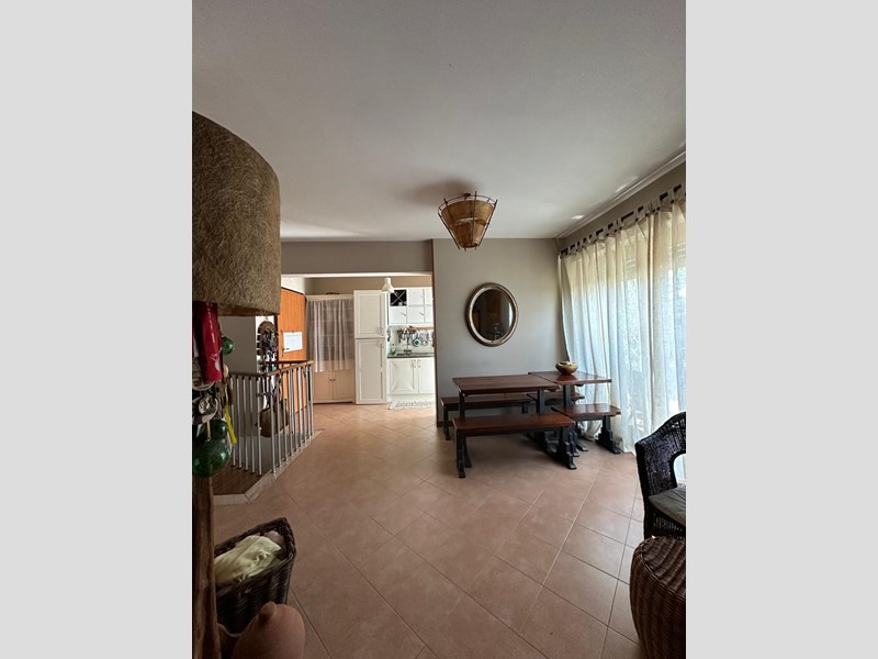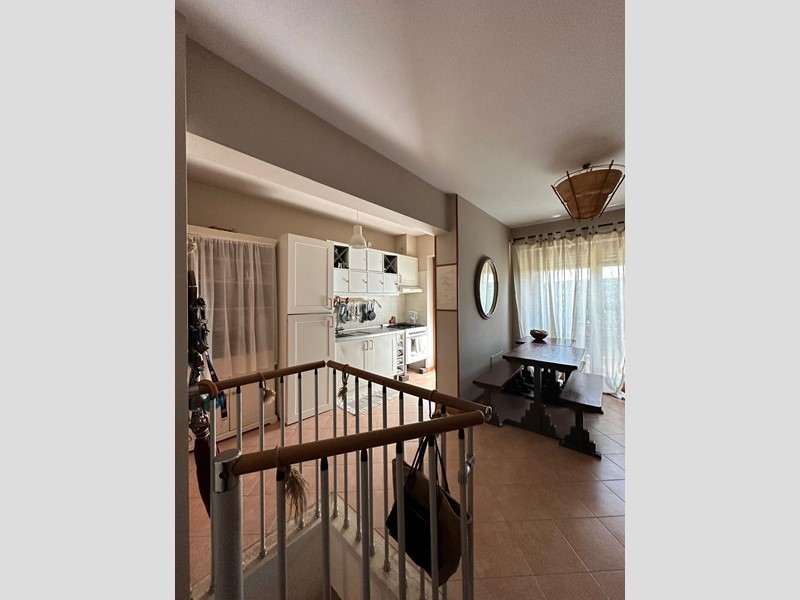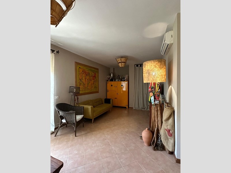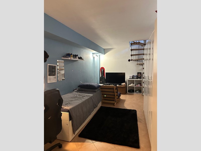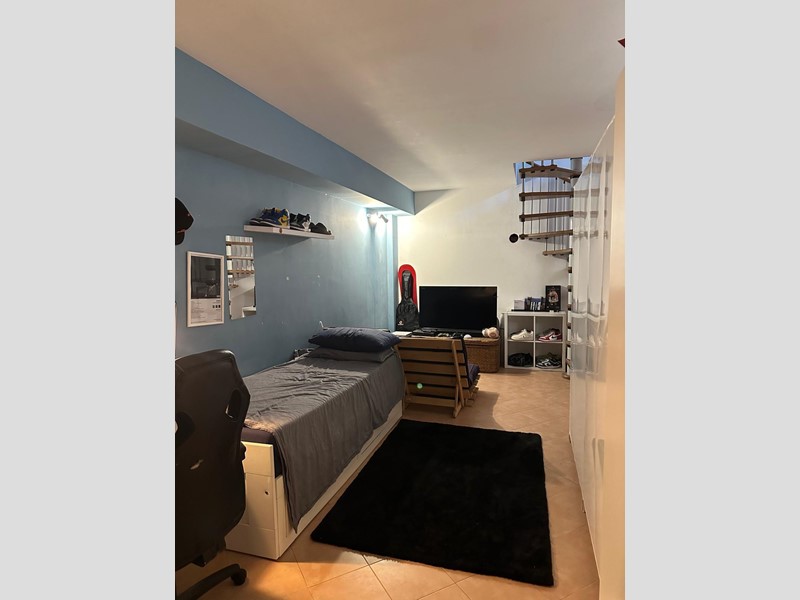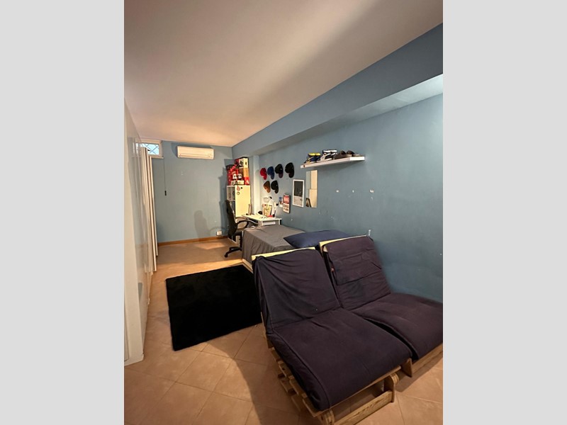 Nel salone l'angolo cottura parzialmente nascosto da una parete crea uno spazio cucina semi-indipendente pratico e funzionale. Sempre sullo stesso livello troviamo una camera padronale molto ampia, anch'essa con accesso diretto allo spazio esterno. Il bagno di comoda metratura è dotato di doccia idromassaggio. Al piano seminterrato dal quale si accede tramite una scala a chiocciola in legno troviamo due camere delimitate da uno spazio divisorio. Un secondo bagno molto spazioso con doccia e doppio lavello offre a questo piano una completa vivibilità. Un utile ripostiglio completa questo livello sottostante.