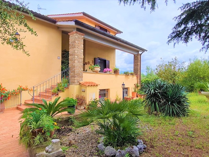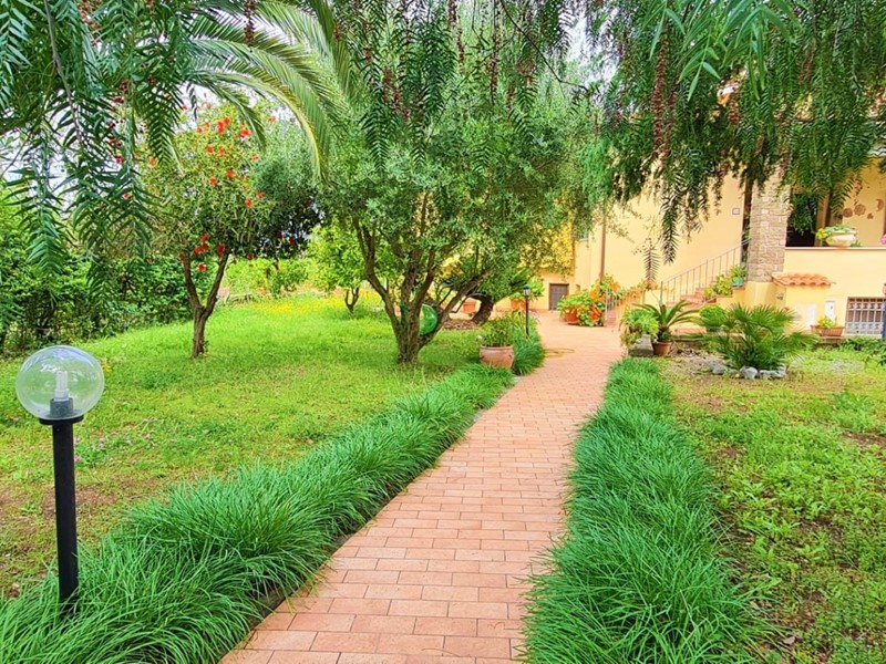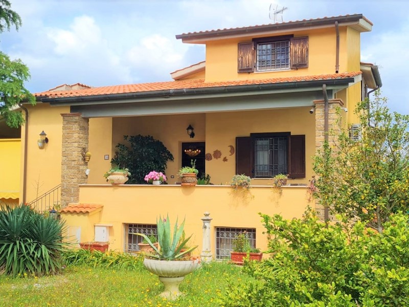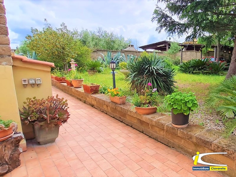 Cerveteri - Infernaccio\n\nL' Agenzia Immobiliare Ciavarella propone in vendita, villa bifamiliare di ampia metratura su due livelli,  immersa nel verde ma poco distante dal centro cittadino.\n\nL'immobile è composto al piano terra da un salone doppio, cucina abitabile con camino, camera da letto matrimoniale, cameretta/studio, bagno e ripostiglio.\nAl primo piano troviamo due camere da letto matrimoniali, bagno e grande ripostiglio sottotetto.\n\nCompletano la proprietà due grandi aree porticate perimetrali l'immobile e un ampio giardino circostante la casa di 600 mq.\n\nL'immobile è dotato di riscaldamento autonomo e impianto di climatizzazione.\n\nInsieme all'abitazione viene venduto anche un terreno  di 3000 mq c. a. \n\n and euro; 290.000, 00 Trattabili. - Maggiori Dettagli: Porta blindata, Camino, Impianto D'Allarme, Infissi in Alluminio