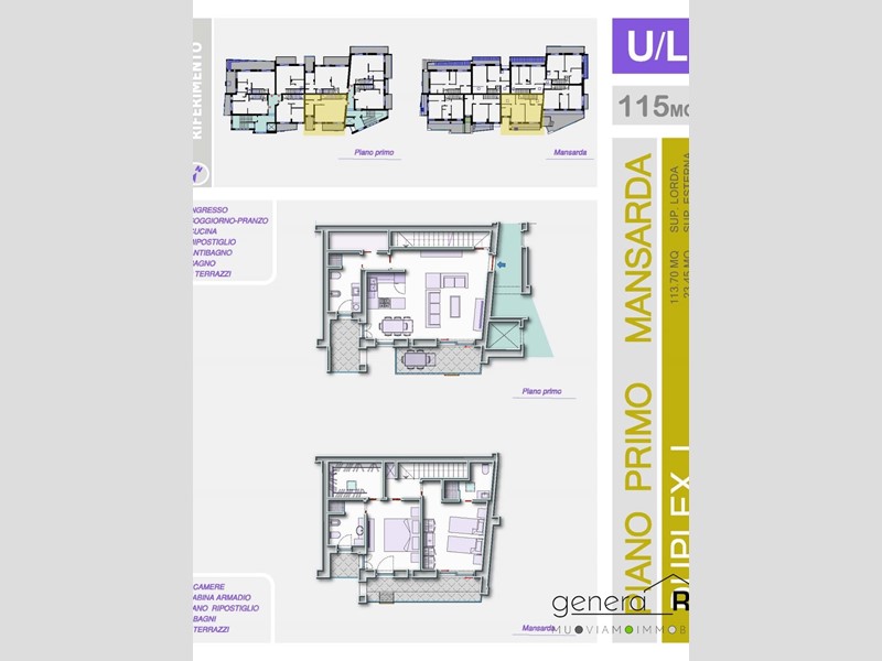 Nelle primi pendici collinari di Pescara nelle adiacenze di Via Tirino in zona tranquilla e panoramica e non lontana dall'università, tribunale e servizi commerciali, proponiamo in vendita appartamenti di nuova costruzione.\nLa palazzina completamente recintata, in via di realizzazione con consegna prevista a Settembre 2026, si sviluppa su tre piani ed è costituito da dodici unità abitative con diversa distribuzione interna e dotate di ampi terrazzi e/o giardini vivibili.\nLa soluzione proposta si sviluppa su due livelli primo e secondo, con zona giorno composta da soggiorno/pranzo, bagno scala di collegamento al livello superiore, mansardato, con due camere da letto e bagno. Ampi terrazzi.\nPossibilità di garage e cantina.\nL'immobile sarà realizzato secondo le più moderne tecniche costruttive, con particolare attenzione alla sicurezza, al confort ed al risparmio energetico.\nI materiali e le tecnologie impiantistiche comprendono:\n- Sistema a pompa di calore per climatizzazione invernale/estiva e per la produzione di acqua calda.\n- Riscaldamento a pavimento radiante\n- Pannelli fotovoltaici\n- Infissi esterni e murature con elevate caratteristiche termo-acustiche\nRifiniture di pregio a scelta dell'acquirente.
