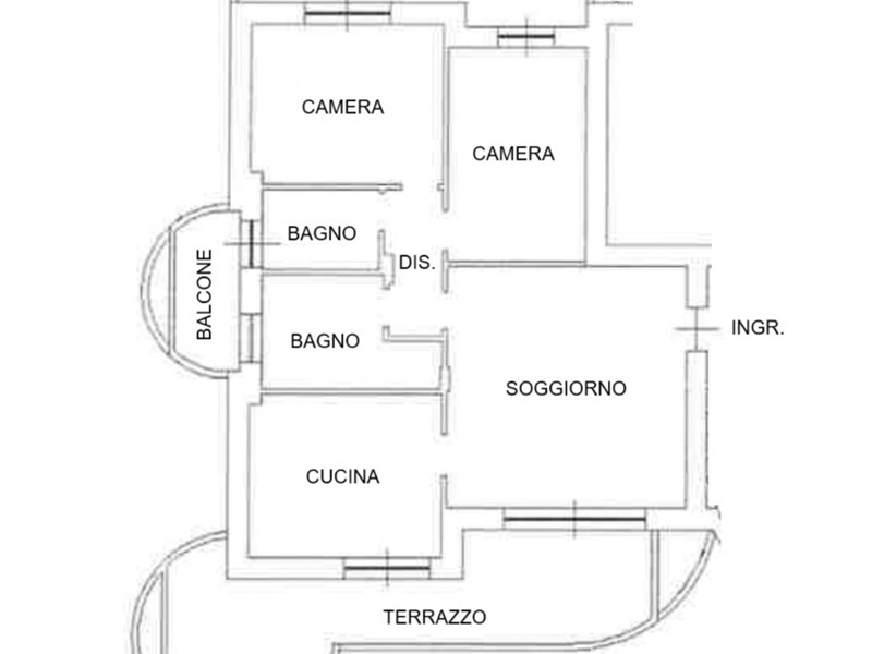 L'appartamento, situato al secondo piano e servito da ascensore, è composto da ingresso nello spazioso soggiorno, cucina separata ed abitabile, disimpegno zona notte con due spaziose camere e doppi servizi. Tutte le stanze sono servite da spazi esterni quali balconi / terrazzini.
