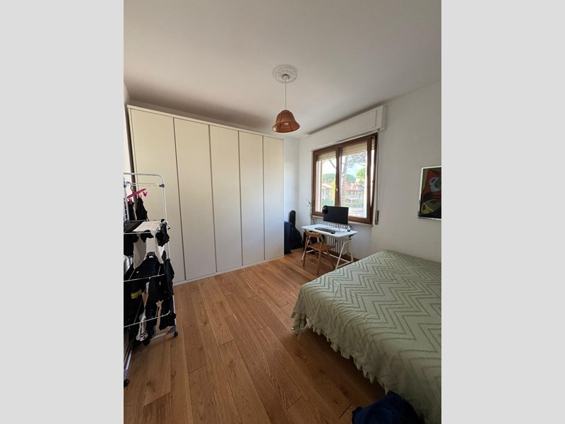 La zona notte comprende una generosa camera matrimoniale, una seconda camera di medie dimensioni e un ripostiglio, per la massima funzionalità. Il bagno, recentemente ristrutturato, unisce comfort e modernità.
