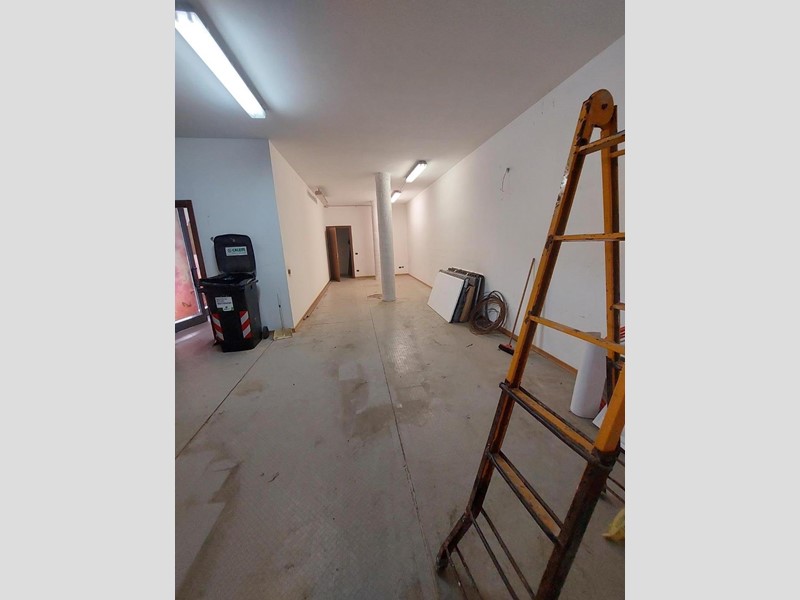 in zona di forte passaggio affittasi fondo commerciale 100 mq ca posto al piano terra, fronte strada,  composto da un unico spazioso ambiente dove è stato relaizzato con un divisorio una bella  zona uffici, sono presenti un servizio igienico ed un  rip/spogliatoio. l'immobile è dotato di 2 belle vetrine e tre ingressi.  n° 2 posti auto esclusivi. Resede antistante il fondo. il locale risulta in ottime condizioni , recente , accessoriato di condizionatori e riscaldamento a pavimento, luce e acqua.  adatto per attività commerciali in genere, studi medici/professionali, centri estetici.