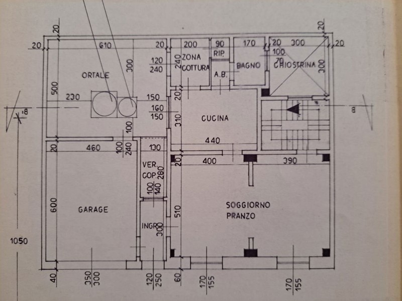 Casa indipendente composta al piano terra da ingresso-salotto, soggiorno, cucina e bagno con giardinetto retrostante, tre camere da letto e bagno al primo piano di circa 130 mq, garage di circa 26, cantina.
