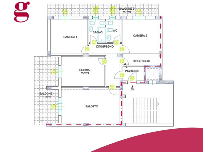 Ad accoglierci è un ingresso che fa da filtro all'intero immobile, composto da salone, cucina abitabile, 2 camere da letto, doppi servizi, balcone e balcone verandato vista mare.