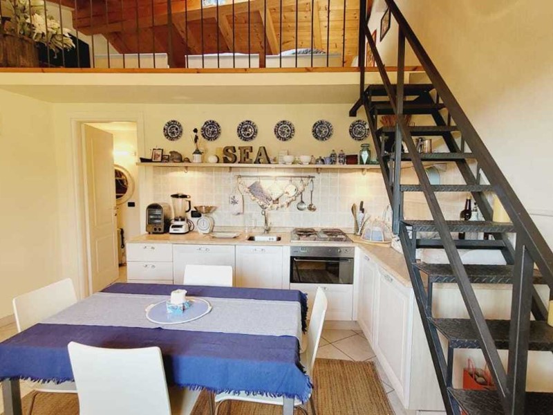 L’abitazione si compone di un soggiorno con angolo cottura, un disimpegno in parte adibito a ripostiglio, una camera da letto matrimoniale ed un bagno; dal soggiorno si accede, tramite una comoda scala, alla suggestiva zona dell’ampio soppalco.