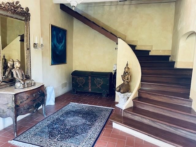 CAMAIORE. A soli tre minuti dal centro di Camaiore, in primissima collina, villa casale di pregio, contornata da circa 15.500 mq di terreno. All'interno della proprietà si trova un rustico indipendente di circa 55 mq ristrutturabile. Entrando dalla cancellata, lato sud, che delimita l'inizio della proprietà, si percorre una strada privata, dalla quale sulla destra, si può notare il rustico da ristrutturare. Alla fine della strada, arrivati ai posti auto la villa presenta un ampio porticato coperto, all'interno del quale troviamo la porta d'accesso che introduce in un ingresso maestoso dal quale si accede ad un'ampia cucina abitabile attrezzata anche da forno a legna per il pane e barbecue. lateralmente un'elegante sala pranzo. Dall'ingresso si accede anche a due ampi saloni con camino che danno l'idea del prestigio di questo immobile. da un disimpegno laterale si accede alla zona notte composta da quattro camere e tre bagni. La scala artistica in legno posizionata nel vano ingresso della villa, porta ad un disimpegno notte al piano primo, dove troviamo quattro camere da letto ed un bagno. A corredo ampia terrazza panoramica. Nel seminterrato ampie cantine caratteristiche mantenute volutamente al rustico. Infine posti auto e garage.