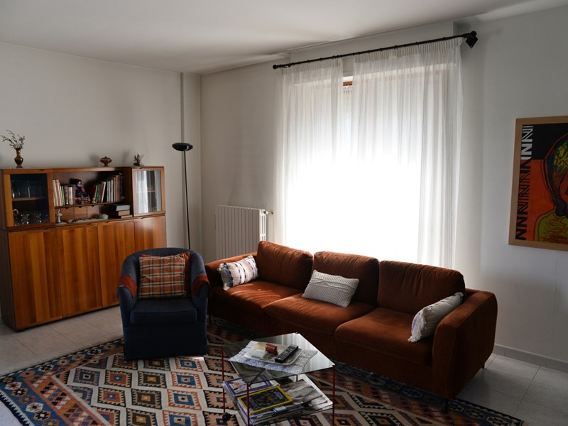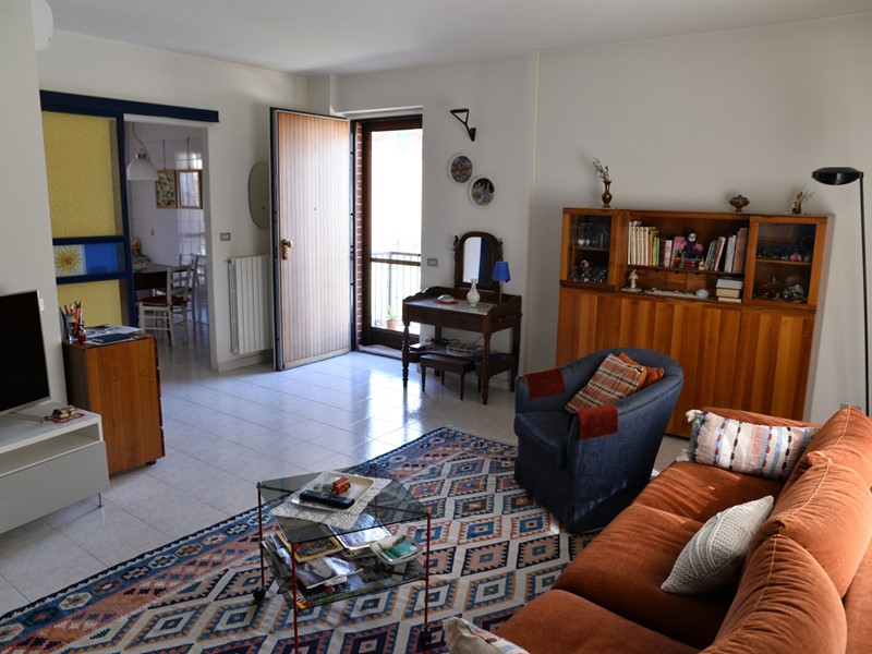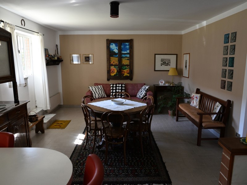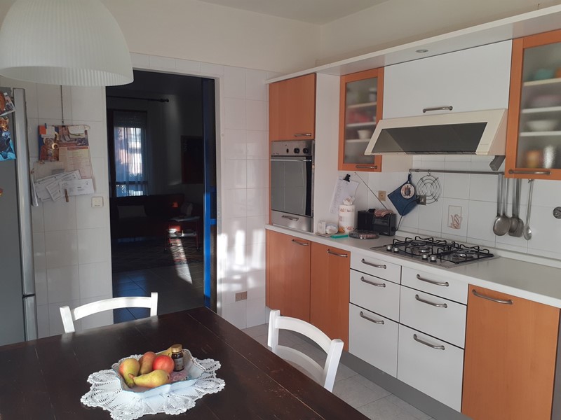 Salendo al primo piano, l'ingresso conduce a una luminosa sala living, a una cucina abitabile, a due camere da letto ben distribuite e ai servizi principali.