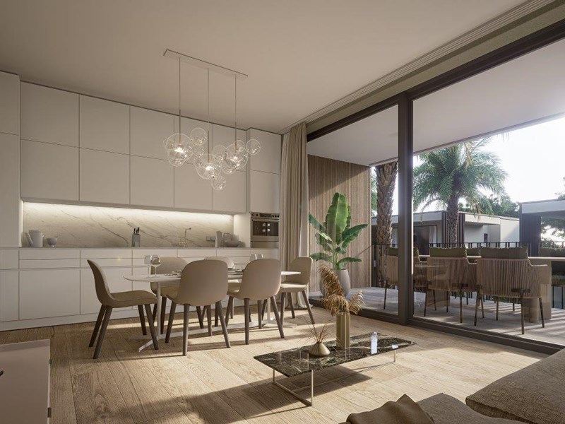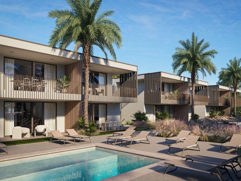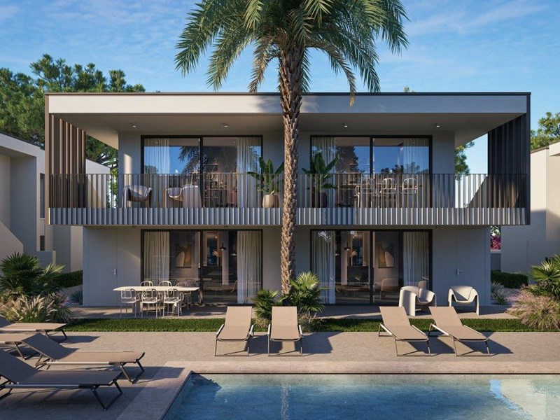 con 2 piscine. Disponibilità di trilocali e quadrilocali, dotati di impianto di riscaldamento a pavimento, fotovoltaico, impianto di aria condizionata, predisposizione per impianto d’allarme, con rifiniture