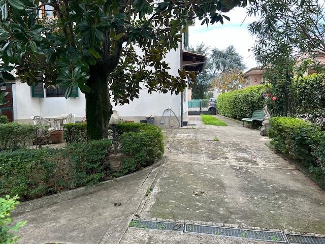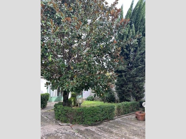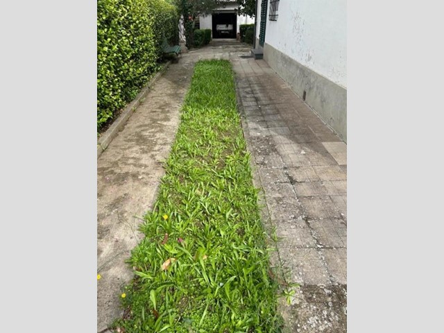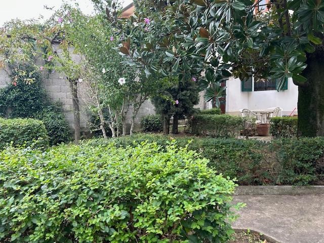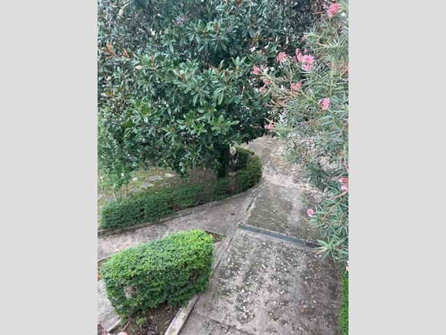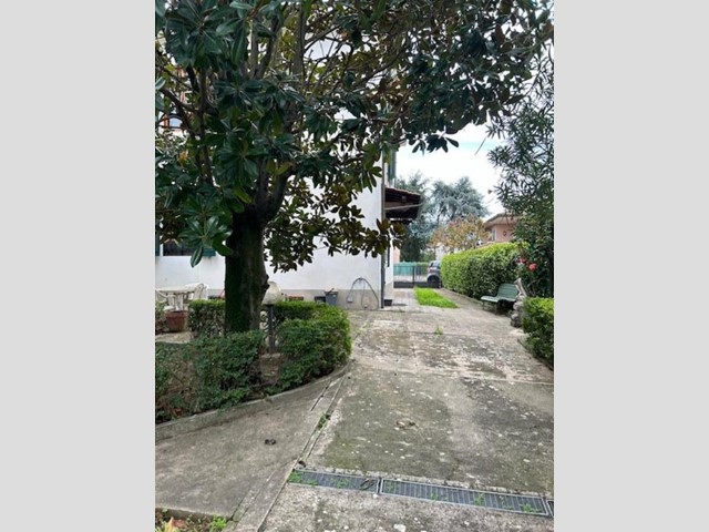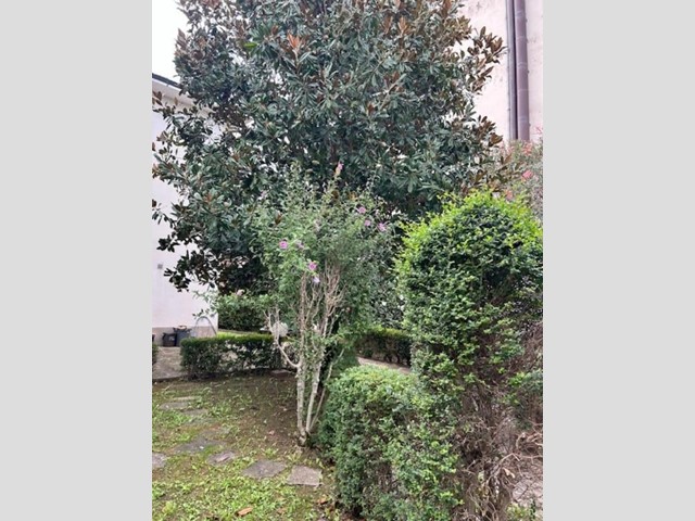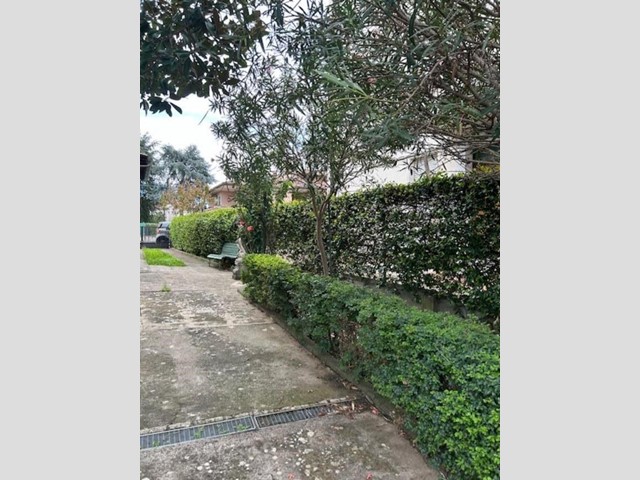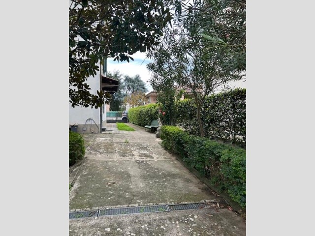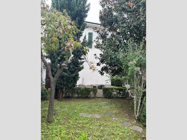 Il grande giardino, che circonda i tre lati dell'abitazione, presenta un resede frontale che accompagna al portone di ingresso, e un ampio vialetto carrabile che accede alla parte posteriore, dove si espande notevolmente e dove si trovano tre annessi per un totale di mq. 55, attualmente adibiti ad autorimesse ma facilmente trasformabili in un'ulteriore abitazione.
