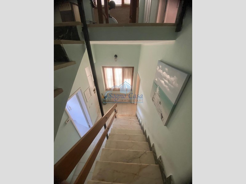 Piano terra: Cucina abitabile, salone luminoso e vano scale che conduce ai livelli superiori.