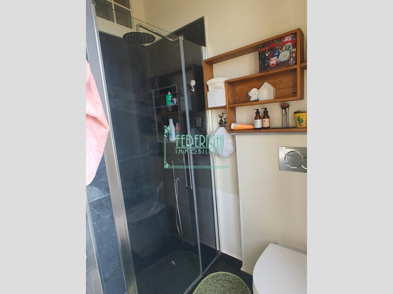 l'appartamento è in ottime condizioni, risatrutturato si compone di soggiorno con cucina a vista , luminoso, disimpegno, ripostiglio bagno con doccia e finestra,2 camere.pavimneti in parquet.Al piano terra è corredato da una cantina privata di cca mq 8 -