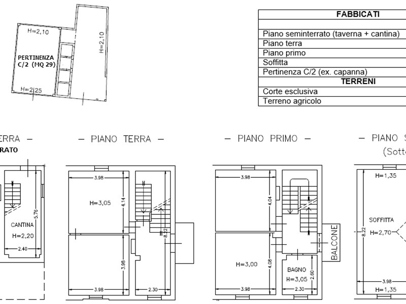P. terra/seminterrato (40 mq.): taverna e cantina;