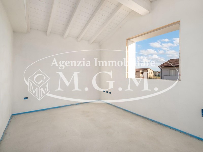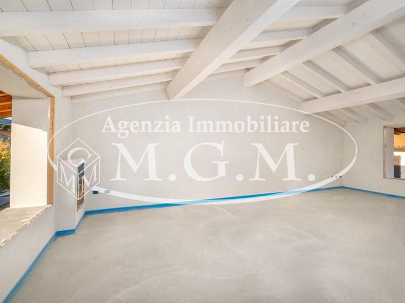 La casa si sviluppa su tre piani: al piano terra troviamo l'ingresso, un luminoso soggiorno con ampia vetrata, un portico esterno, una zona cucina-pranzo, un disimpegno, un ripostiglio/lavanderia e un bagno di servizio. Al primo piano si trova un disimpegno, due camere matrimoniali e un bagno principale. Infine, la grande mansarda abitabile di 49 mq. caratterizzata dai soffitti a vista in travi-travicelli e tavolato sbiancato, si compone di un grande locale (suddivisibile), un bagno e una terrazza coperta.