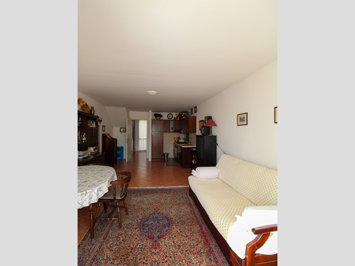 L'appartamento, al quale si accede da un cancelletto comune ad altre abitazioni del complesso, è così strutturato: al primo piano troviamo disimpegno, bagno finestrato con doccia, soggiorno con cucina a vista e balcone; al secondo piano due camere matrimoniali e bagno finestrato con vasca e zona lavanderia.