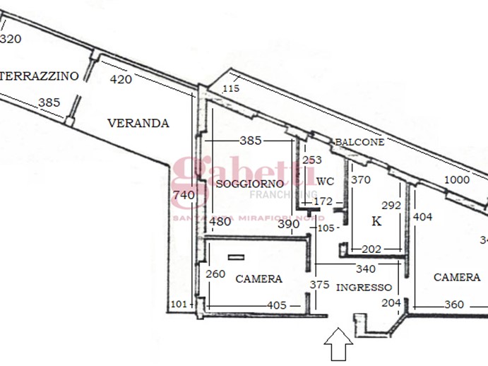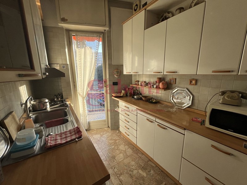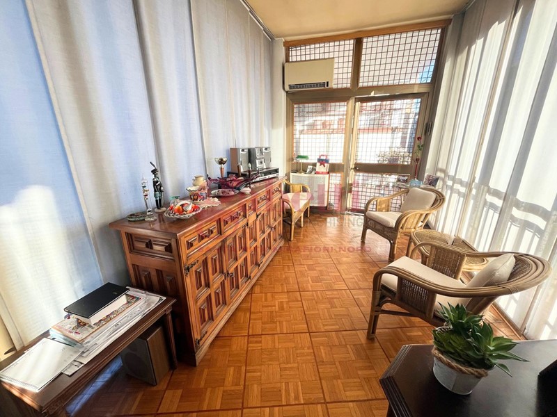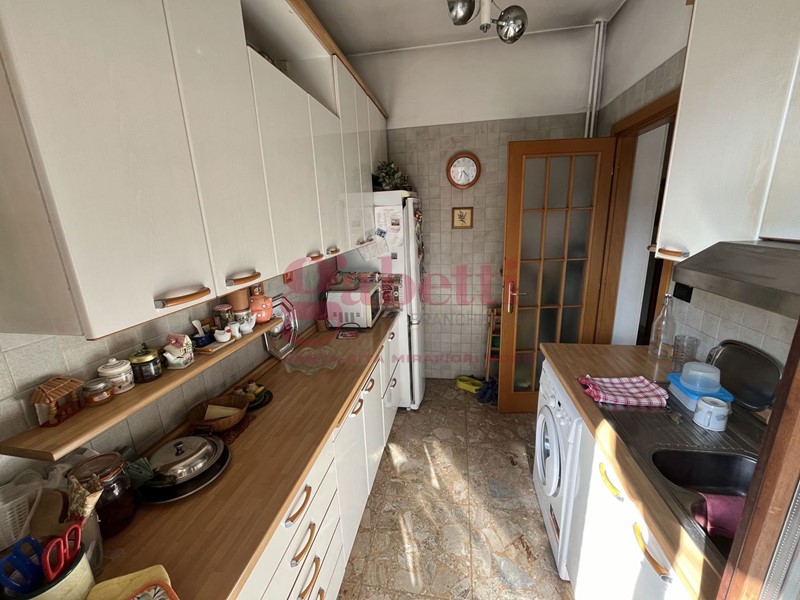 COMPOSIZIONE INTERNA: tripla esposizione nord- ovest- sud, ingresso, cucina, soggiorno, due camere, servizio, balcone, balcone verandato e TERRAZZO di 12 mq, cantina al piano interrato;