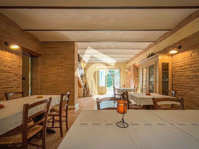 Il piano terra ospita un'accogliente zona giorno dotata di spaziosa sala da pranzo, una comoda cucina abitabile attrezzata con forno a legna, un bagno e un funzionale locale uso magazzino. Sempre su questo piano è presente un bilocale che si compone di sala e camera matrimoniale con bagno privato.