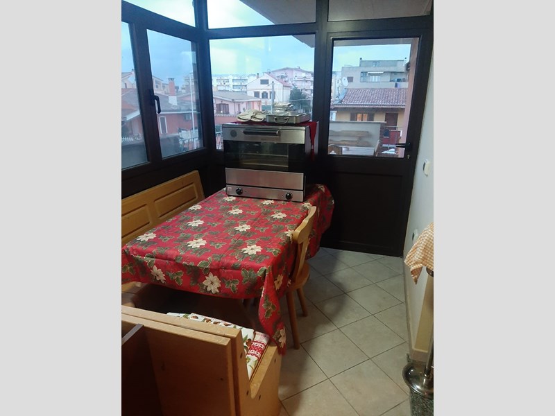 Assemini: via Raffaello, zona residenziale Piri Piri, in complesso di 5 unità, appartamento al piano primo composto da ingresso, salone, cucina (ricavata nella veranda chiusa e sanata), disimpegno, bagno con doccia, cameretta, camera matrimoniale, 30 mq veranda a giro su 2 lati, posto auto.