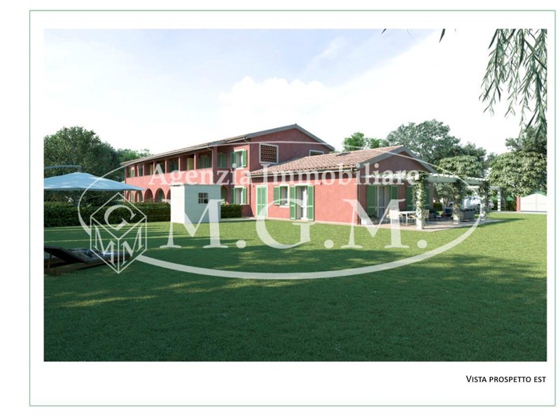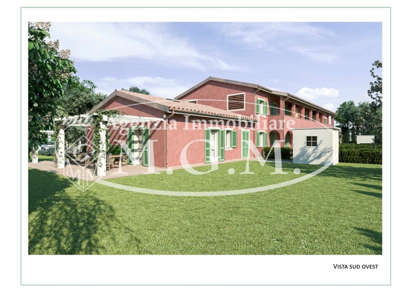 Fornacette - NOSTRA ESCLUSIVA - Nuovo intervento edilizio denominato "Casa Piaggio" posto in zona tranquilla e verde a poca distanza dal centro del paese. Villetta angolare del tipo viareggina, indipendente di 107 mq., 36 mq. di soppalco/mansarda, 37 mq. di loggiato con accesso sia dal soggiorno sia dalla cucina e con 1150 mq. di giardino, posto al piano terra, composto da: ingresso in soggiorno di 23 mq. con accesso sul loggiato, cucina abitabile di 13 mq. con accesso sul loggiato, disimpegno notte, 2 camere, studio, 2 bagni (di cui uno in camera matrimoniale). L'immobile è corredato da un ripostiglio esterno e da una casetta in legno con pergolato ad uso posto auto coperto, da un ulteriore posto auto scoperto e da 1150 mq. di giardino esclusivo adatto per l'installazione della piscina. Rifiniture eccellenti, impianti di ultimissima generazione, non allacciato al gas, fotovoltaico 2,14 Kwh. Consegna primavera 2025. Possibilità di personalizzare pavimenti, rivestimenti e imbiancature. Classe energetica: A3 - Richiesta 435.000 tratt. Rif. 1302