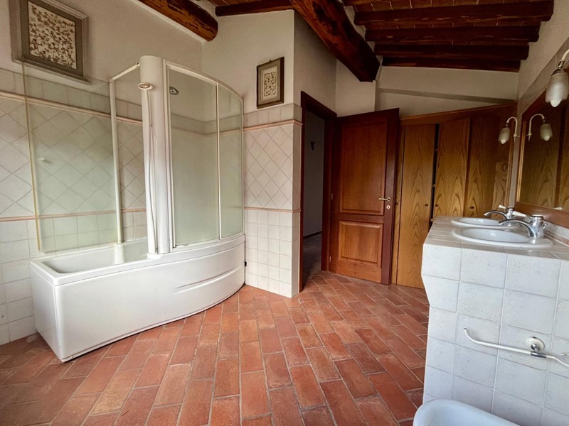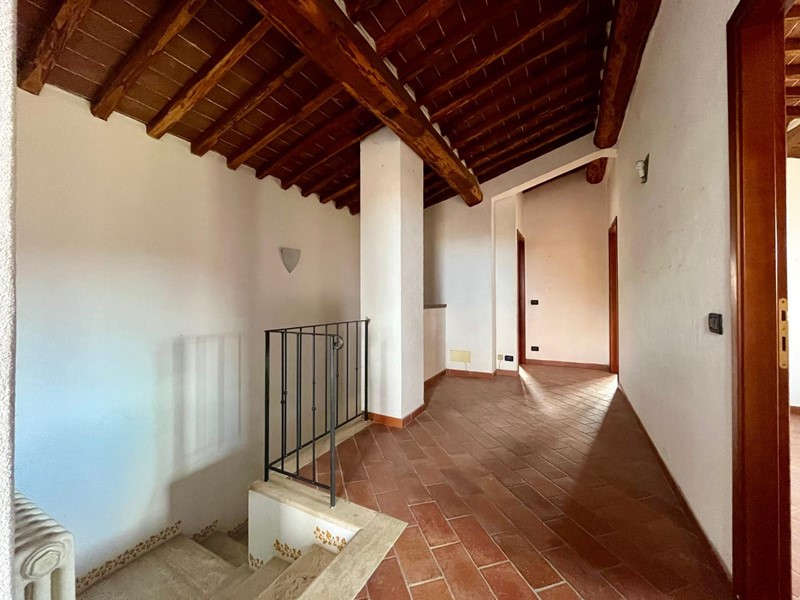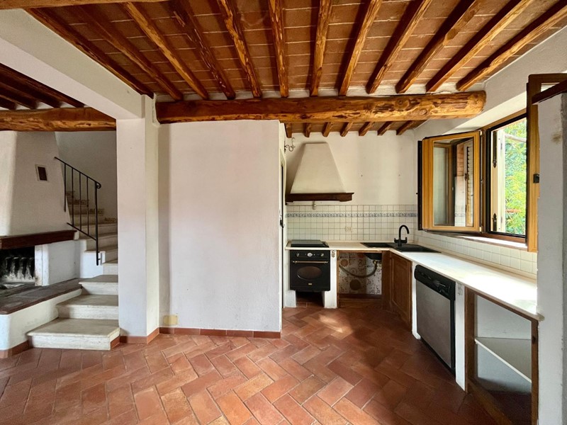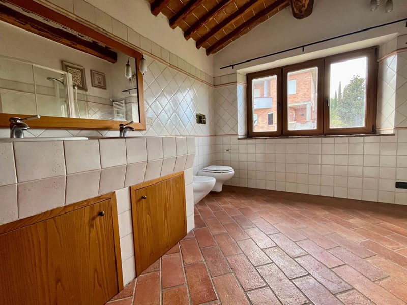 Monteroni d'Arbia, villetta a schiera con giardino privato. Ingresso indipendente da piano terreno con accesso a grande soggiorno/cucina con focolare e terrazzo, al piano superiore tre camere, doppi servizi ed ampio terrazzo coperto. Completano la proprietà garage, taverna, giardino esclusivo e resede lastricato. L'immobile è dotato di impianti autonomi e funzionanti, ottimi affacci e posizione riservata. Costruzione anno 2000. Ottime condizioni generali.