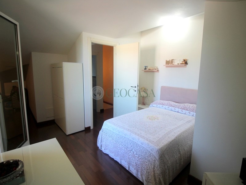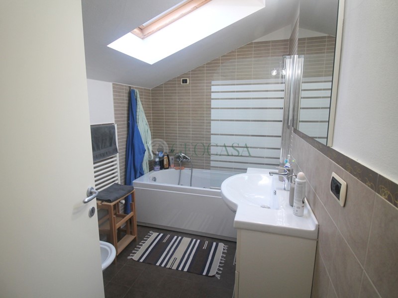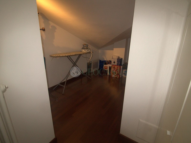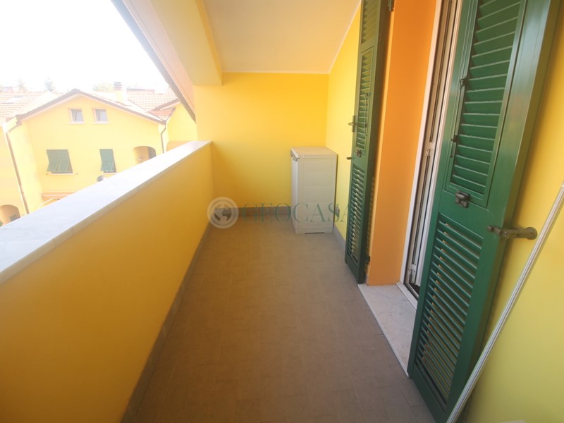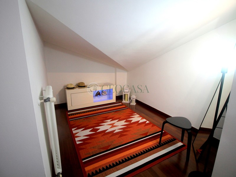 VZC185: Pian di Follo, in stabile di costruzione decennale appartamento al piano secondo con piccolo disimpegno d'ingresso , soggiorno con balcone , cucina a vista, bagno con balcone; al piano superiore ad uso sotto-tetto, sono state ricavate una matrimoniale con cabina armadi e loggia, cameretta con loggia e servizio con lucernaio. Esternamente cantina e posto auto di proprietà.