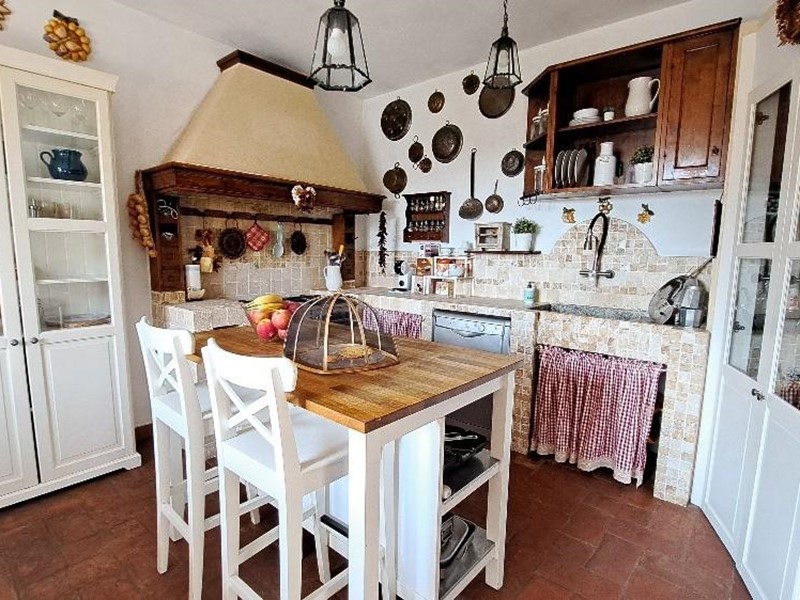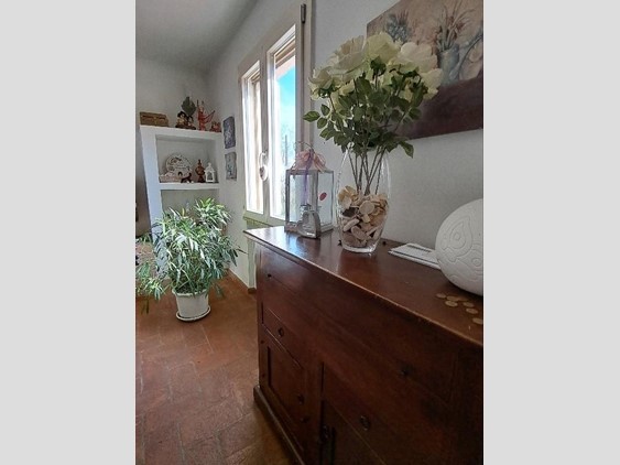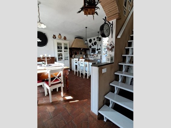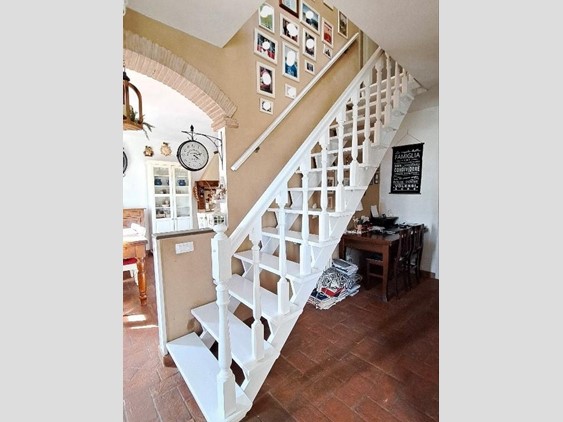 All'immobile si accede tramite scala esterna tipica dello stile toscano con balcone, ampio disimpegno, SALA CON CAMINO, grande CUCINA ABITABILE, reparto notte, bagno grande con vasca angolare, due CAMERE MATRIMONIALI;