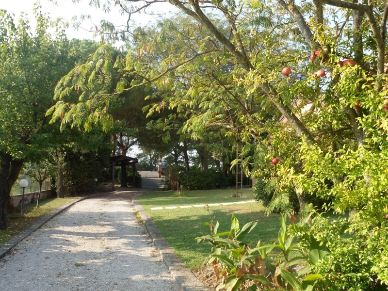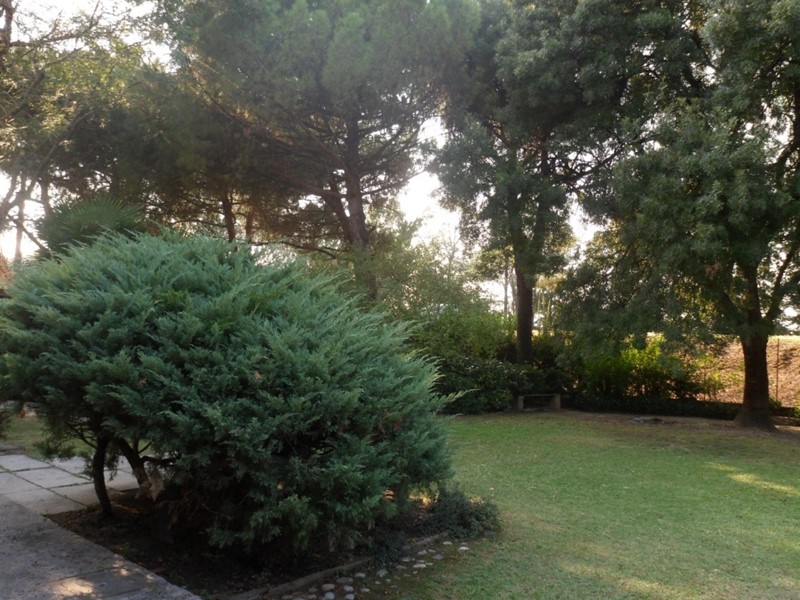 La casa vanta di 6 camere, 1 soggiorno,2 cucine,4 bagni e vari ripostigli, 1 cantina e 1 grande garage, 2 porticati di 50mq, il tutto circondato da un parco di 3.000mq piantumato.