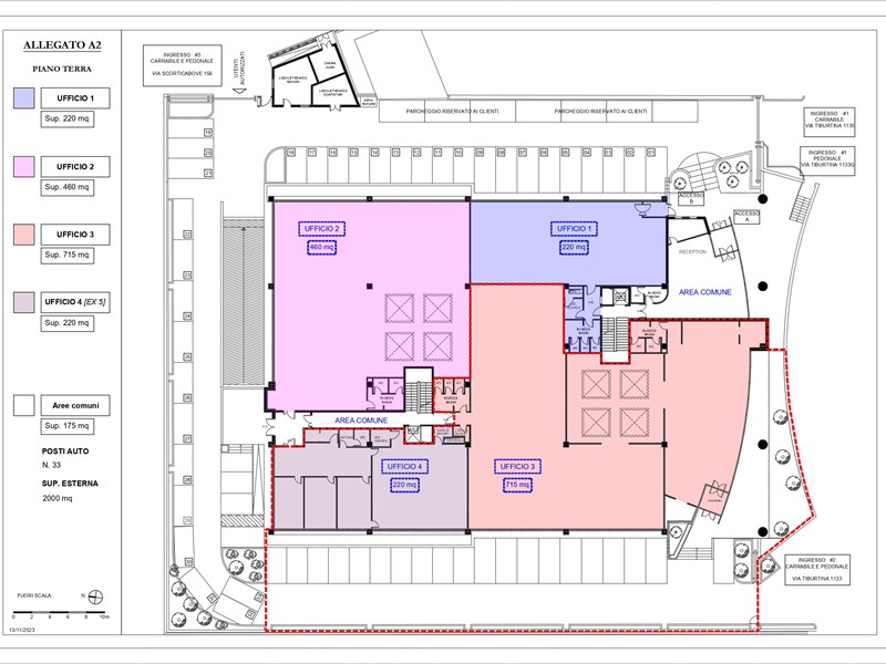 Proponiamo in locazione il complesso, sito in Roma Via Tiburtina fronte strada all’interno del GRA, l’intero complesso insiste su un lotto indipendente, la costruzione si sviluppa su tre livelli fuori terra ed uno interrato, all’interno del quale sono presenti 85 posti auto, con una superfice coperta di mq 5000 c.a. in un contesto urbano riconosciuto come di alto prestigio.