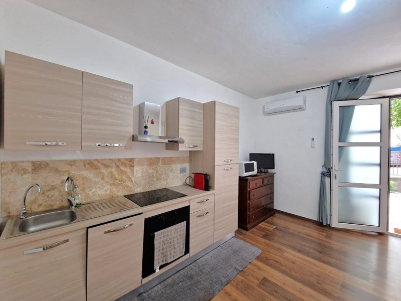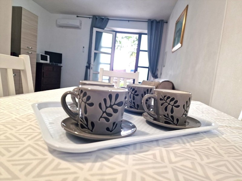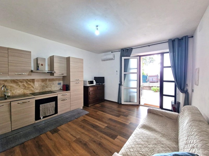 L'appartamento, che gode di un ampio spazio esterno privato dove trascorrere piacevoli serate in compagnia, vede al suo interno un ambiente unico dove sono presenti la cucina in linea con il mobile TV, lo spazio per il divano/letto e la zona pranzo, oltre ad un ulteriore spazio dove posizionare un mobile per il contenimento, una bella camera m atrimoniale completamente arredata ed il bagno finestrato completo di box doccia. La casa è dotata di caldaia a condensazione e impianto di climatizzazione estiva.