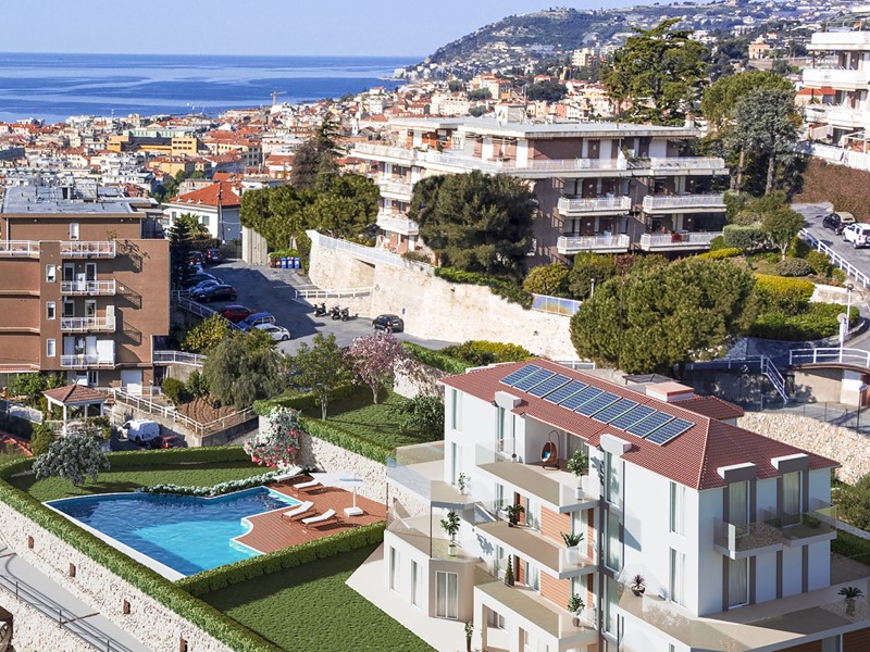 BELLISSIMO TRILOCALE CON TERRAZZO VISTA MARE - Sanremo, nuova ed elegante realizzazione che impiega le migliori tecnologie costruttive ed energetiche e che si classifica al top dell'efficienza energetica, in classe A. Progetto immobiliare esclusivo ad uso residenziale di nuova costruzione, circondato da ampi e verdi giardini, a pochi passi dal mare. L'edificio si sviluppa su 4 livelli abitativi ed è costituito da 7 appartamenti di prestigio, dotati di spaziosi giardini e grandi terrazzi panoramici da cui si gode di una splendida vista sul Golfo di Sanremo. Il contesto sorge in posizione invidiabile e strategica, a pochi minuti dal porto turistico Portosole e dalle spiagge della rinomata città di Sanremo, il cui centro cittadino è facilmente raggiungibile a piedi. La bellissima Costa Azzurra e la famosa Montecarlo distano solamente a pochi km di distanza. Tutto si trova nelle immediate vicinanze, mare e natura, servizi di ogni genere, e il litorale Sanremese con le sue spiagge di sabbia finissima. Nel complesso, che è circondato da ampi spazi verdi, sarà presente una suggestiva piscina esterna privata ad uso esclusivo dei condomini, con vista sul mare e sulla natura circostante; oltre un' area prendisole, che garantirà riservatezza, relax e la giusta privacy. Appartamenti dal design innovativo che godranno di grande luminosità e che saranno dotati delle migliori soluzioni tecnologiche ed estetiche, saranno caratterizzati da materiali e finiture di alto livello, capitolato di pregio, complementi di arredo e da una progettazione interna funzionale e curata nei minimi dettagli. Saranno infine dotati di impianto fotovoltaico e di impianto domotico. Completano il profilo di questo intervento comodi box, predisposti per l'installazione delle colonnine di ricarica per le auto elettriche. In particolare proponiamo in vendita splendido appartamento trilocale posto al secondo piano composto da ampio soggiorno con ampie vetrate panoramiche e cucina, camera da letto padronale matrimoniale con bagno en suite e balcone riservato, seconda camera da letto e secondo bagno ad uso della zona giorno. All'esterno grande e meraviglioso terrazzo vista mare di 52 mq e balcone di 9 mq e sul retro un comodo giardino di 115 mq ad uso esclusivo. L'intero complesso adotterà avanzate tecnologie volte al massimo contenimento del consumo energetico nel pieno rispetto dell'ambiente. Un progetto che fa della sostenibilità ambientale ed energetica, della cura del dettaglio e del comfort abitativo uno dei principali punti di forza. Disponibili diverse tipologie: trilocali al piano terra con giardino privato parzialmente terrazzato, trilocali al piano primo e secondo con ampie vetrate panoramiche e terrazzi vista mare, e attico pentalocale panoramico al terzo piano. Tecnologia moderna, eleganza e pregiate finiture per garantire un ottimo livello di benessere abitativo. Contattaci per fissare un incontro e per avere maggiori informazioni sul progetto. UI 2A