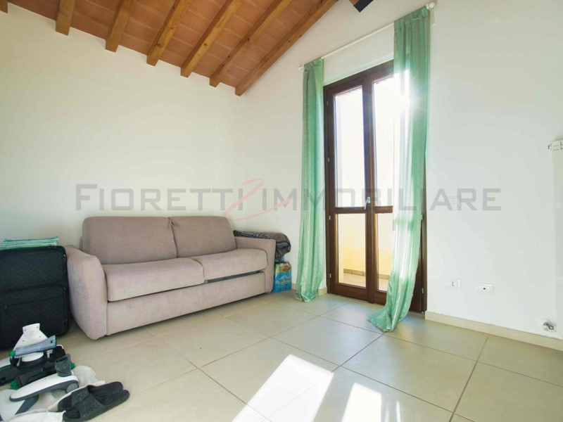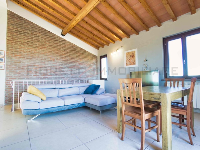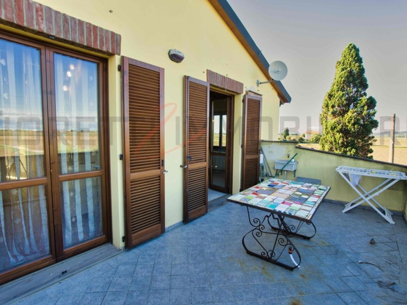 Nella Campagna di Venturina Terme, al confine con il Comune di Piombino, proponiamo la vendita di un appartamento di 79 Mq (lordi), con terrazza di oltre 21 Mq, autorimessa di 17 Mq e giardino privato di circa 130 Mq. La casa fa parte di un casolare interamente costruito nel 2011, dove sono presenti solo 6 unità abitative indipendenti. La proprietà oggetto di vendita, riguarda l'unico appartamento al piano primo, quindi libero su 4 lati. Dal giardino privato, si entra direttamente nell'appartamento, composto da soggiorno con angolo cottura, collegato ad una splendida terrazza di 21 Mq, tramite un piccolo disimpegno, si entra nella camera matrimoniale, nella comoda camera singola e nel bagno. Completa la proprietà una autorimessa a piano terra, con luce, acqua e collegamento agli scarichi. Due posti auto assegnati, all'interno dell'area comune. Gli impianti sono autonomi. Infissi con doppi vetri, predisposizione aria condizionata, riscaldamento tradizionale alimentato a GPL o stufa a pallet nella zona giorno, cisterna comune di raccolta delle acque piovane. Il mare dista circa 5 Km, mentre Venturina Terme, circa 2,5 Km.