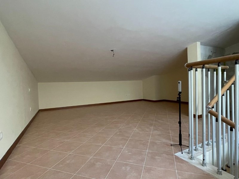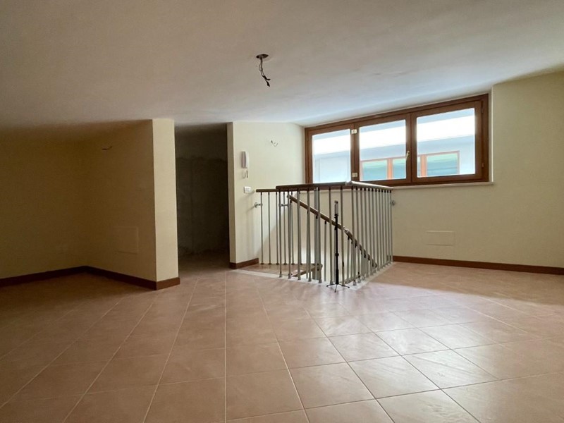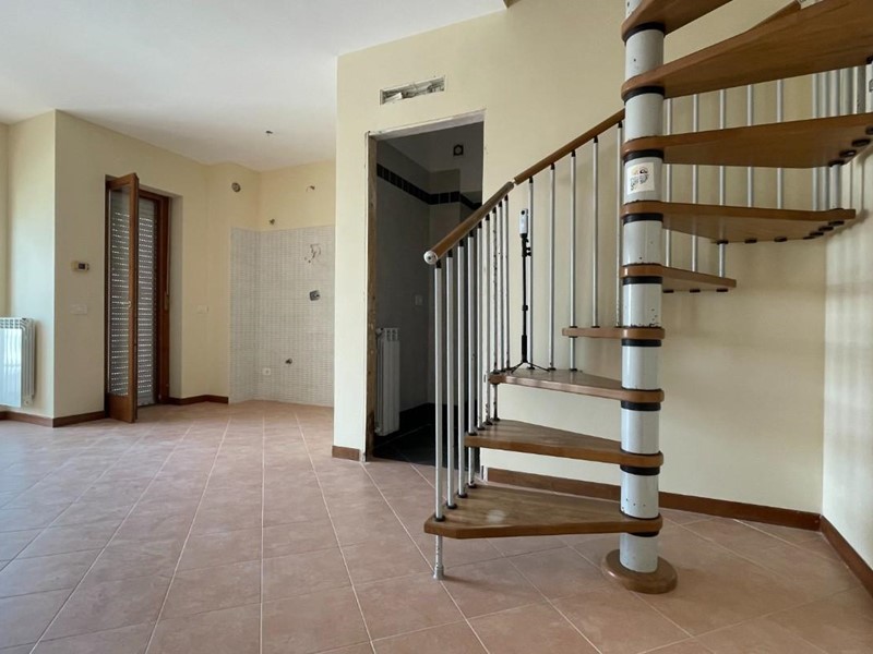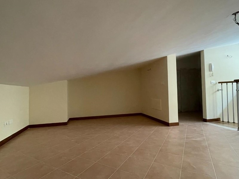 L'immobile si apre in un ampio soggiorno che offre un comodo spazio per l'angolo cottura ben illuminato da una portafinestra che conduce ad un balcone di generosa metratura, 6 mq. Un pratico bagno completa questo livello. Una scala elicoidale in legno porta al secondo livello. Qui troviamo una camera mansardata e una predisposizione per un secondo servizio.