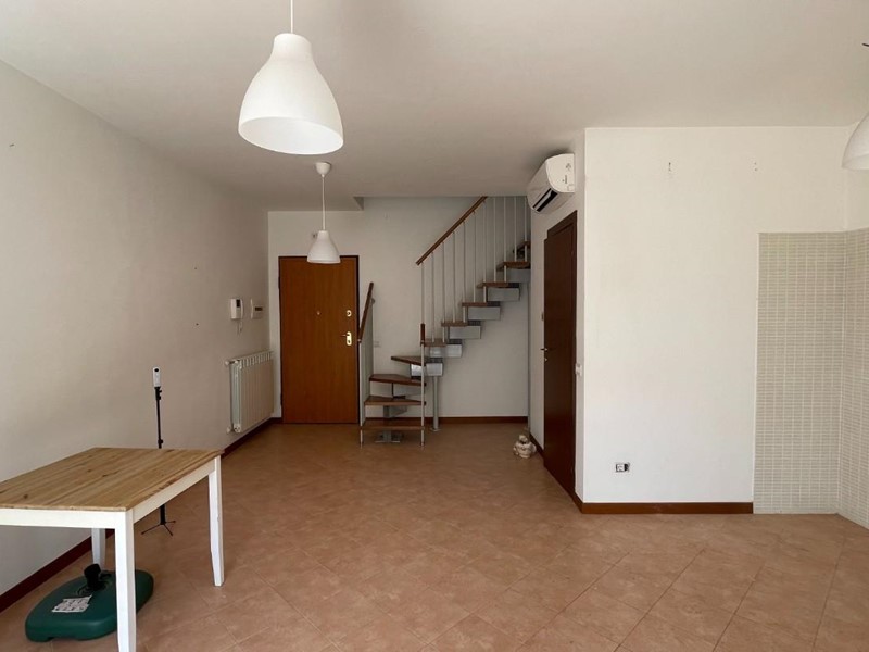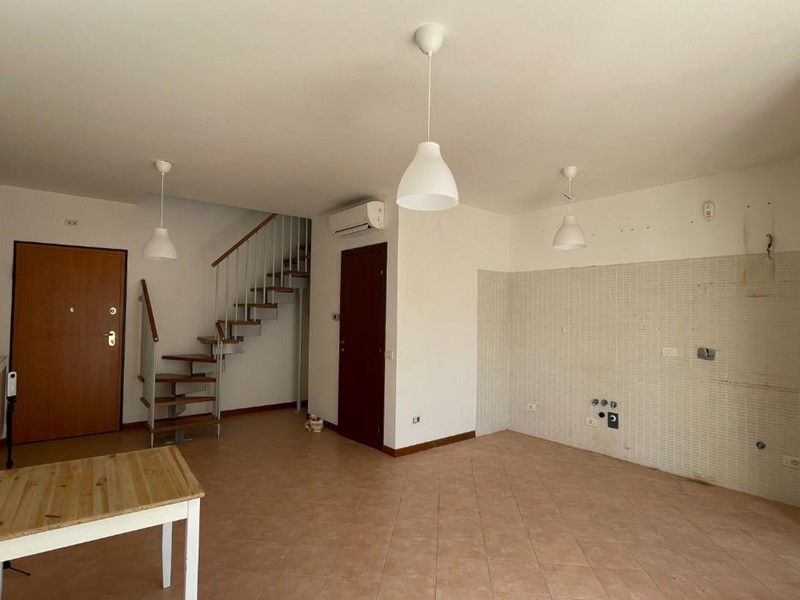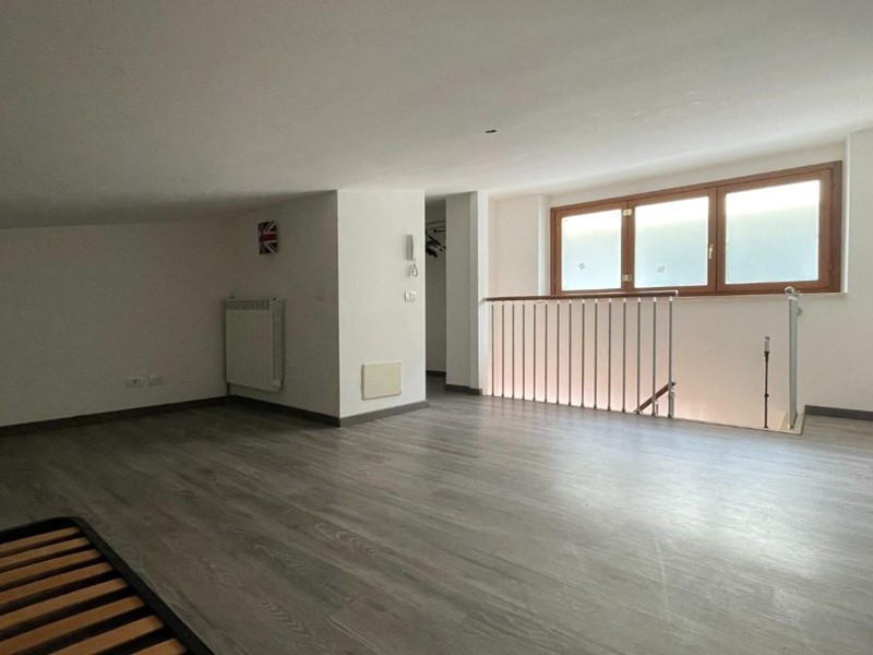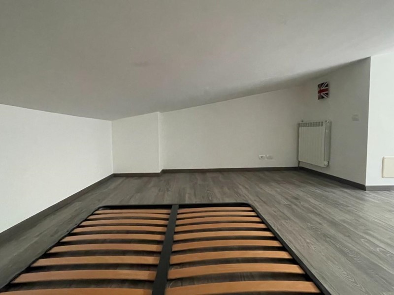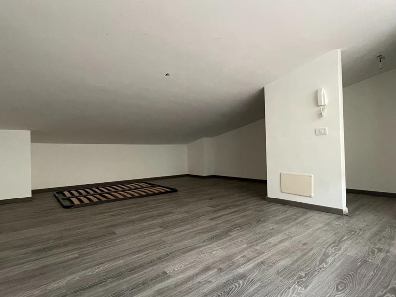 L'immobile si apre in un ampio soggiorno che offre un comodo spazio per l'angolo cottura ben illuminato da una portafinestra che conduce ad un balcone di generosa metratura, 6 mq. Un pratico bagno completa questo livello. Una scala in legno porta al secondo livello. Qui troviamo una camera mansardata e una predisposizione per un secondo servizio.