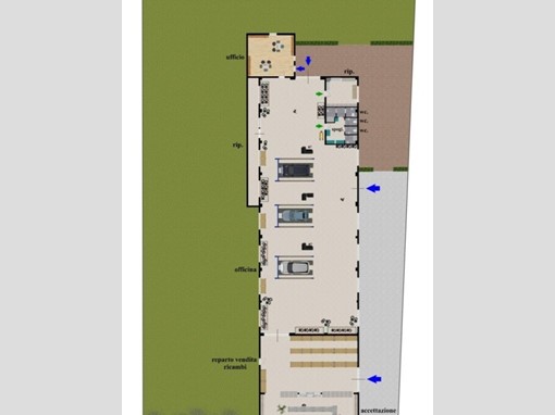 Pressi Quadrifoglio - Capannone ad uso artigianale o industriale, categoria catastale D/8 e con superficie di mq 668. Il capannone ha quattro ingressi carrabili che permettono di accedervi con mezzi pesanti ed è composto da due ampi locali dove poter lavorare e produrre, all'interno troviamo la zona per il personale con spogliatoio, bagni e docce, ufficio di mq 33 e uno soppalcato della stessa superficie, ripostiglio di mq 35. Tutto intorno c'è il piazzale/cortile di mq 3.322. Le condizioni di manutenzione, della struttura proposta, sono discrete perchè l'attività precedente ha cessato da qualche anno ma, va migliorato. La posizione è strategica ed interessante avendo ingresso nella strada statale 554 nei pressi della strada statale 131.