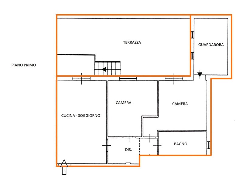L'Agenzia Immobiliare Cinelli propone in vendita un appartamento ristrutturato in zona centro, con ampia terrazza abitabile. di ca. mq. 30. L'appartamento è posto al 1° e ultimo piano, in piccolo condominio ed è composto da ingresso-soggiorno, disimpegno, camera matrimoniale con stanza guardaroba, 2° camera matrimoniale , bagno finestrato . Dalla cucina, si accede ad una ampia terrazza di ca. mq. 30. Inoltre, in proprietà esclusiva due cantinette al piano terra. L'appartamento è stato ristrutturato a nuovo nel 2004.