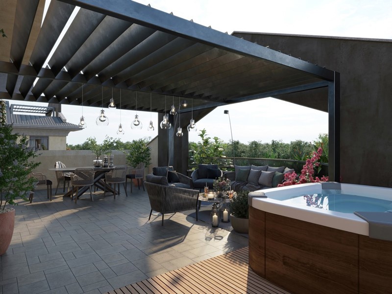 Gli appartamenti dispongono di ampi terrazzini e/o terrazzi, la scelta delle finiture interne è personalizzabile da capitolato, nel quale, è prevista la pavimentazione in gres porcellanato; i serramenti sono in pvc a basso emissivo. Tapparelle elettriche, fotovoltaico per le parti comuni, impianto satellitare, riscaldamento a pavimento con contabilizzatori, predisposizione aria condizionata e videocitofono.