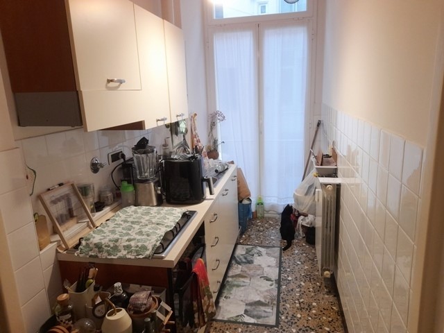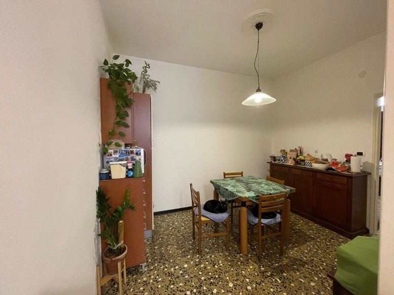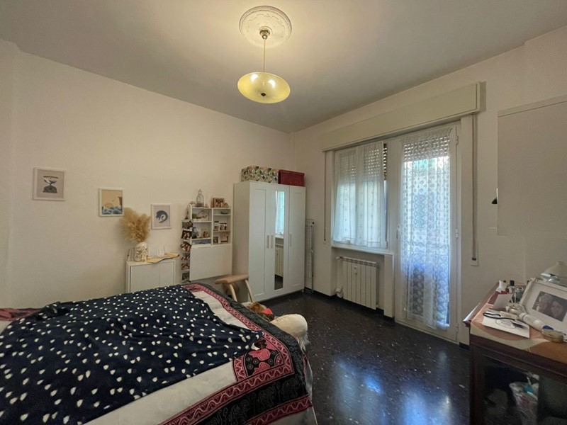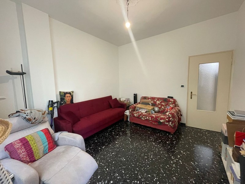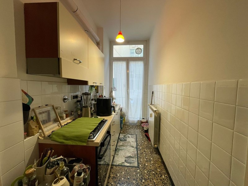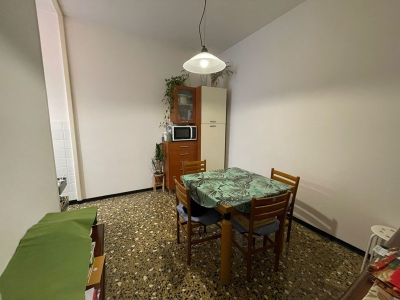 L'appartamento è composto da ingresso alla genovese, grande cucina/zona pranzo, sala, due camere, bagno finestrato appena rifatto con box doccia, ripostiglio e due balconi. Serramenti esterni nuovi e porta blindata