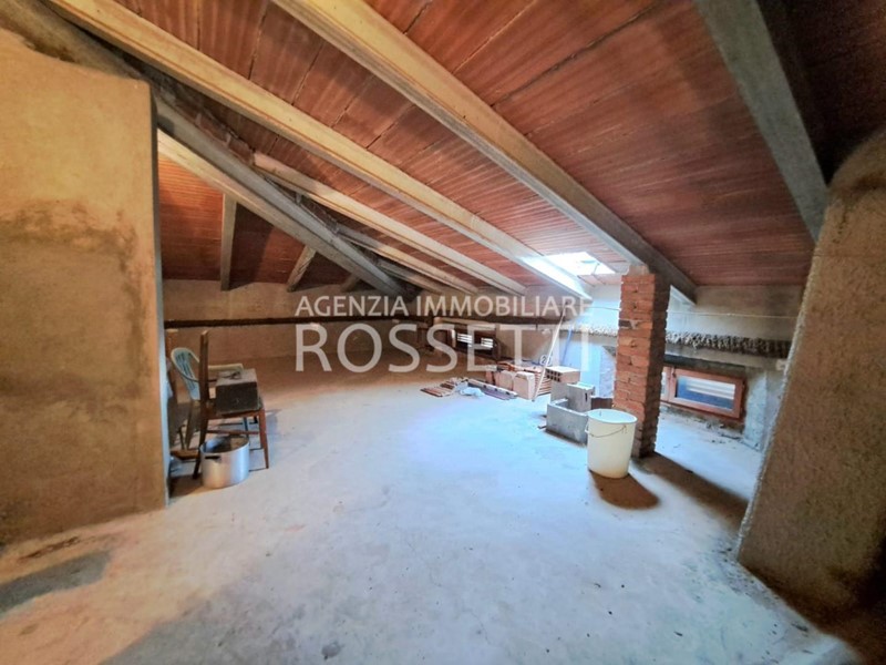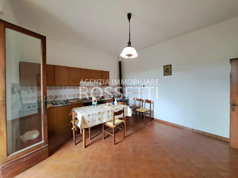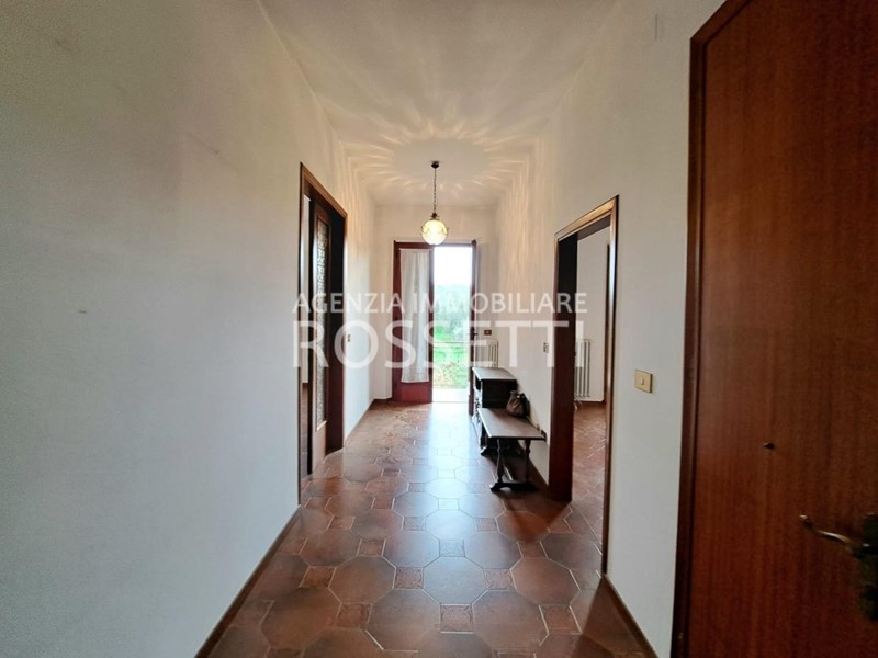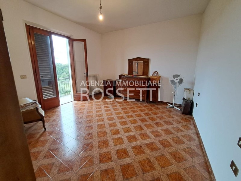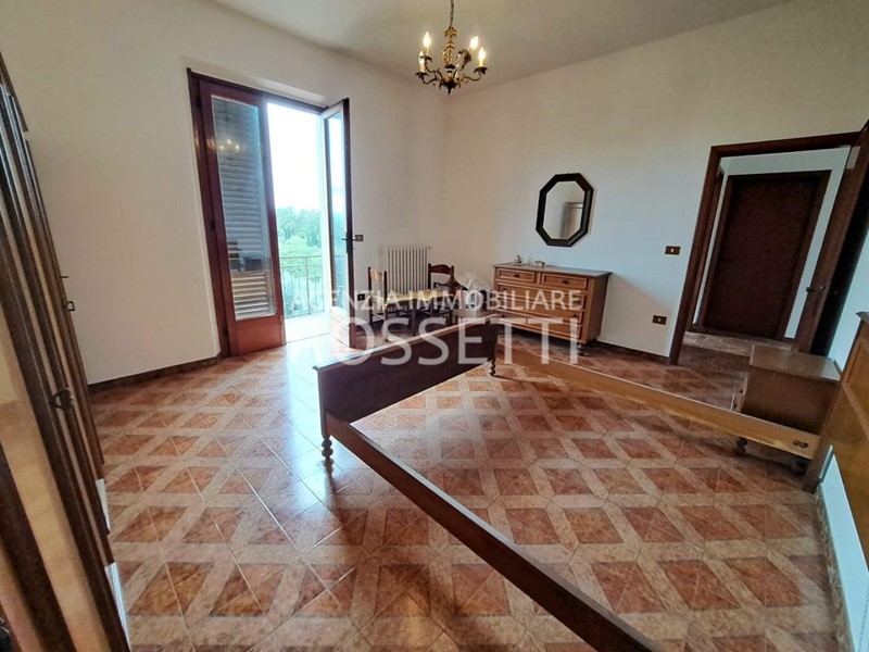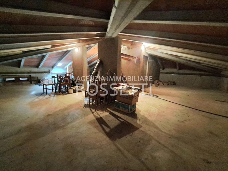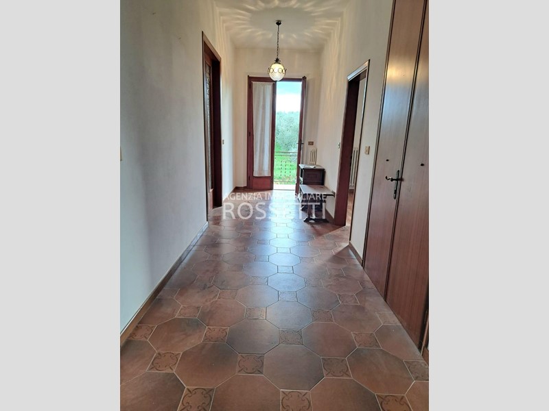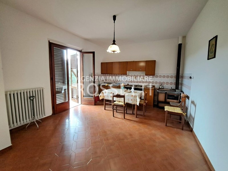 L'appartamento di circa 125 mq si sviluppa su un unico livello ed è composto da vano scala privato in muratura che collega anche alla soffitta abitabile al grezzo esclusiva; ingresso nel disimpegno, cucina abitabile con ampio balcone, soggiorno, camera doppia. due camere matrimoniali con accesso entrambe sul terrazzo tergale che si affaccia sulle colline e bagno. L'immobile è stato ultimato negli anni '80, gli impianti e rifiniture sono dell'epoca ma in buono stato conservativo. I contatori sono stati resi indipendenti predisposti per l'allaccio alle utenze. Al piano terra resede esclusivo di circa mq 70.