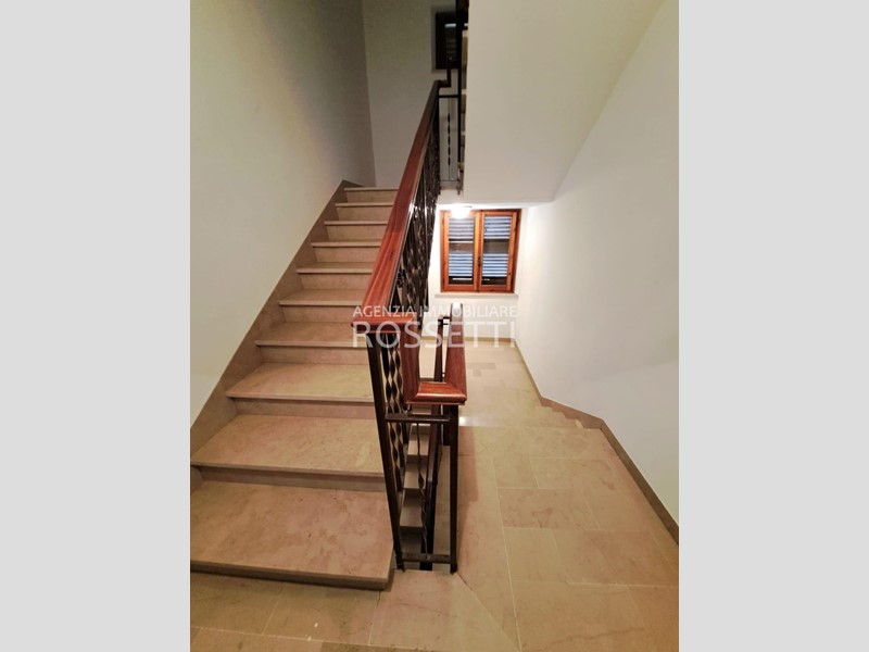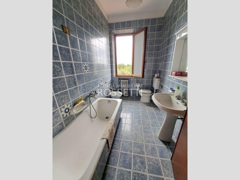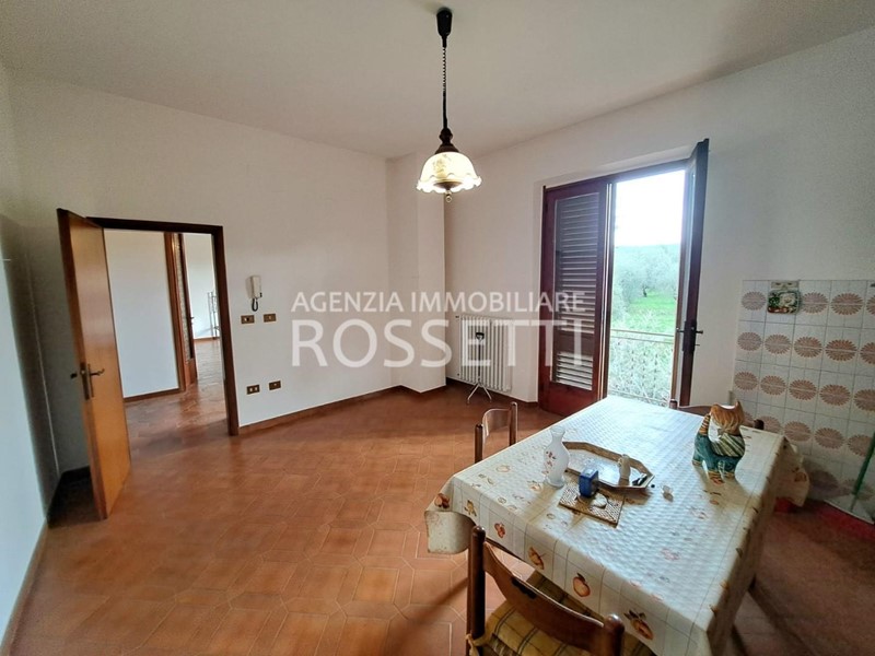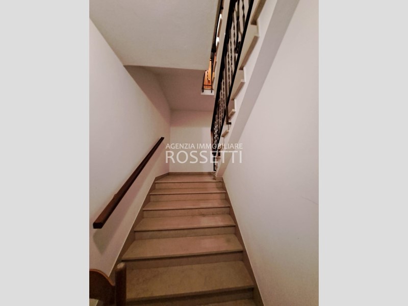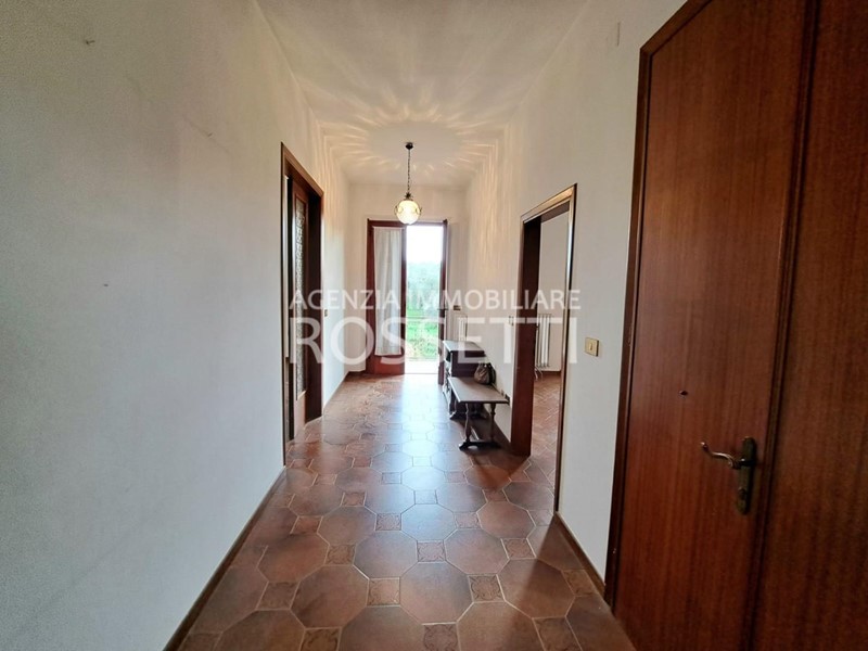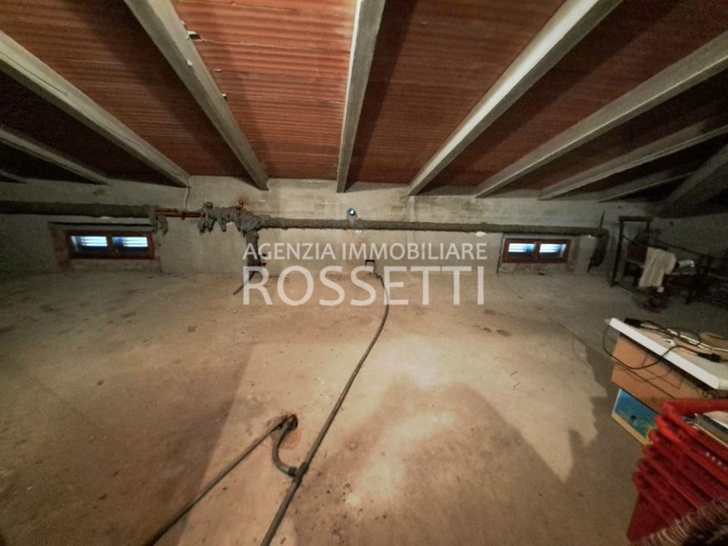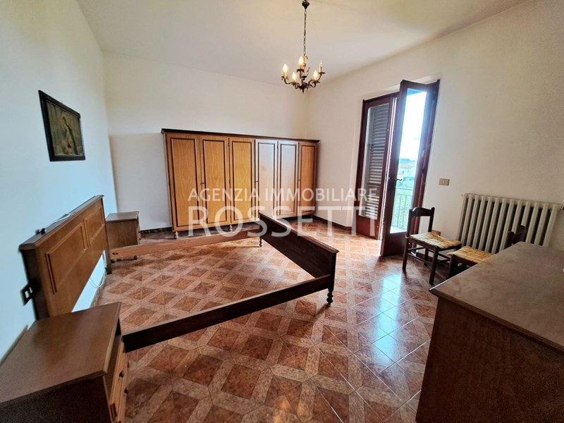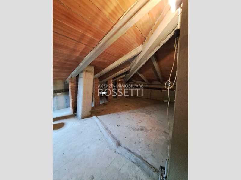 L'appartamento di circa 125 mq si sviluppa su un unico livello ed è composto da vano scala privato in muratura che collega anche alla soffitta abitabile al grezzo esclusiva; ingresso nel disimpegno, cucina abitabile con ampio balcone, soggiorno, camera doppia. due camere matrimoniali con accesso entrambe sul terrazzo tergale che si affaccia sulle colline e bagno. L'immobile è stato ultimato negli anni '80, gli impianti e rifiniture sono dell'epoca ma in buono stato conservativo. I contatori sono stati resi indipendenti predisposti per l'allaccio alle utenze. Al piano terra resede esclusivo di circa mq 70.