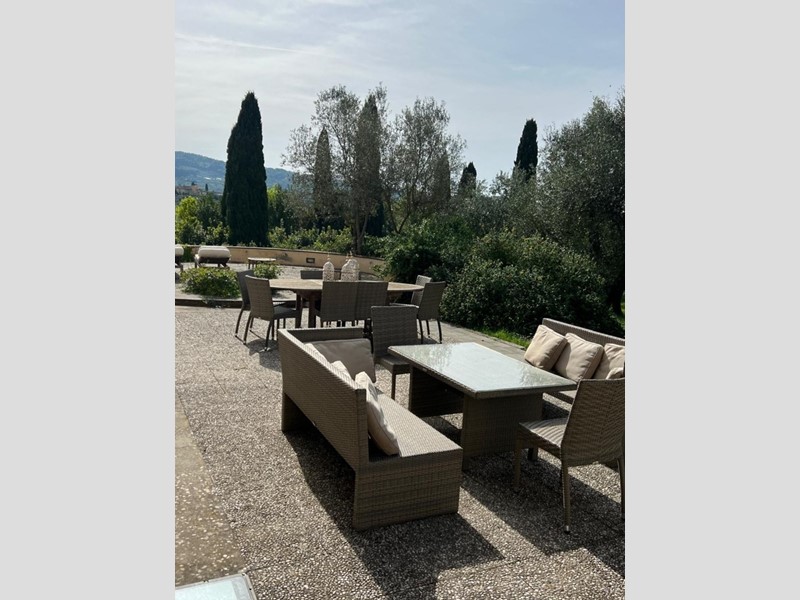 In posizione riservata e panoramica sulle colline di Scandicci, a breve distanza da Firenze, proponiamo una raffinata porzione di villa in stile toscano, con grande giardino privato e terreno di 2500 mq coltivato a ulivi.