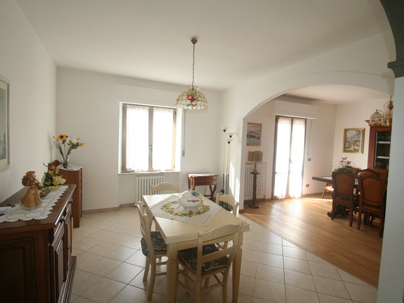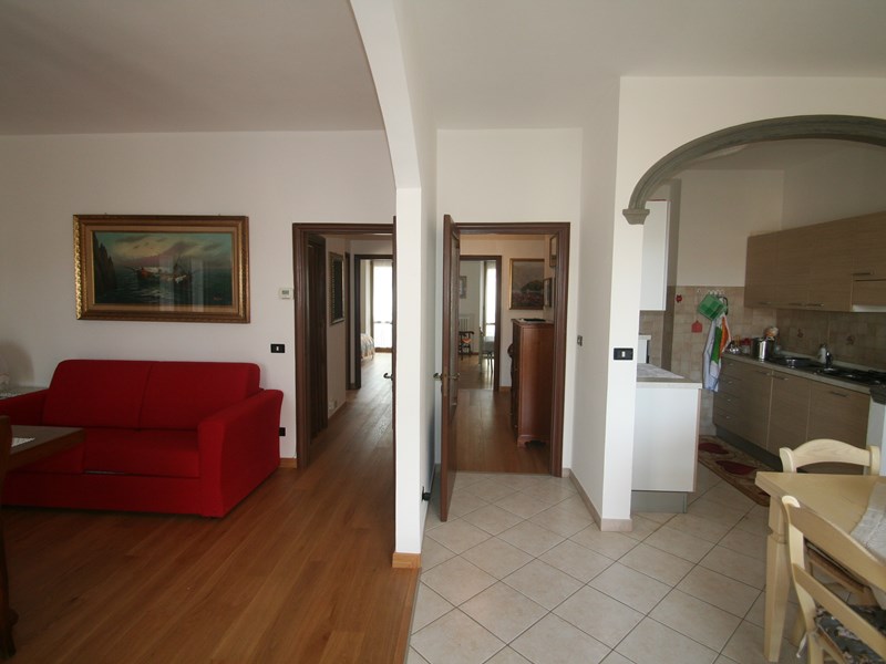 Ristrutturato con finiture interne completamente rinnovate. Vi si accede da androne e scala comune coperta. L'atrio d'ingresso distribuisce i vari ambienti della casa: a sinistra due porte servono l'ampio soggiorno con terrazzo coperto sulla via pubblica e la zona cucina aperta sul soggiorno; a destra le due camere, di cui una matrimoniale, con terrazzo coperto comune che si affaccia sui garage e sul verde retrostante; al centro, in asse con l'ingresso, ampio bagno e adiacente lavanderia (predisposta per eventuale secondo bagno). Il garage è anch'esso ristrutturato, pavimentato e con porta nuova.