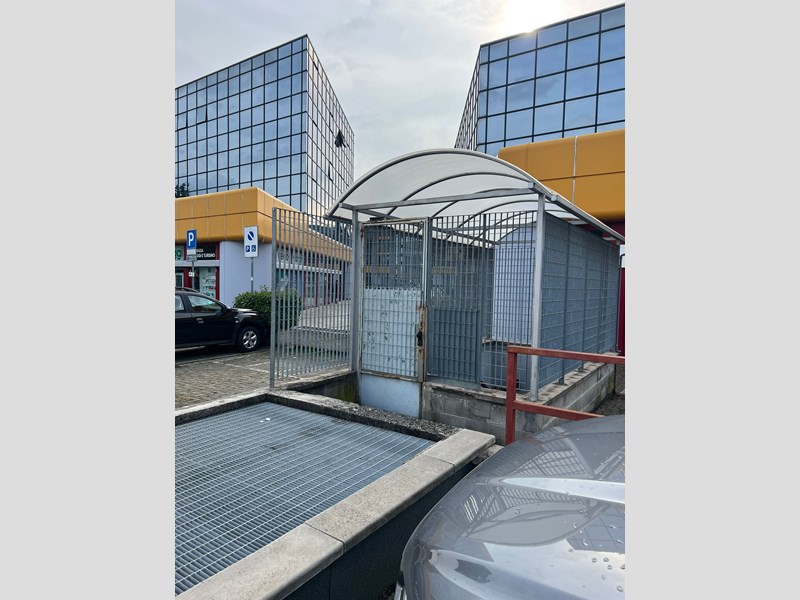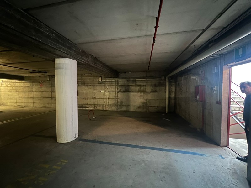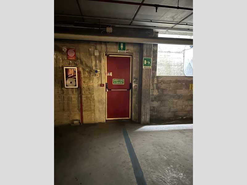 Il posto auto è asfaltato e ben illuminato con adiacente comoda uscita pedonale che porta all'area esterna commerciale.